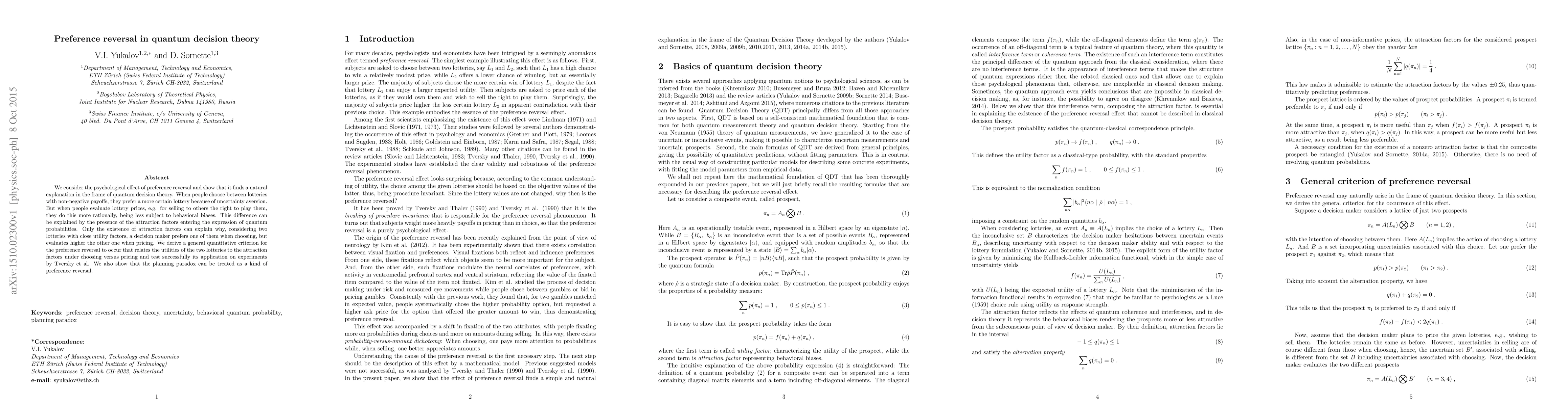Research shows that quantum decision theory can explain preference reversal in choosing versus pricing lotteries, highlighting a key role of attraction factors in this phenomenon.
