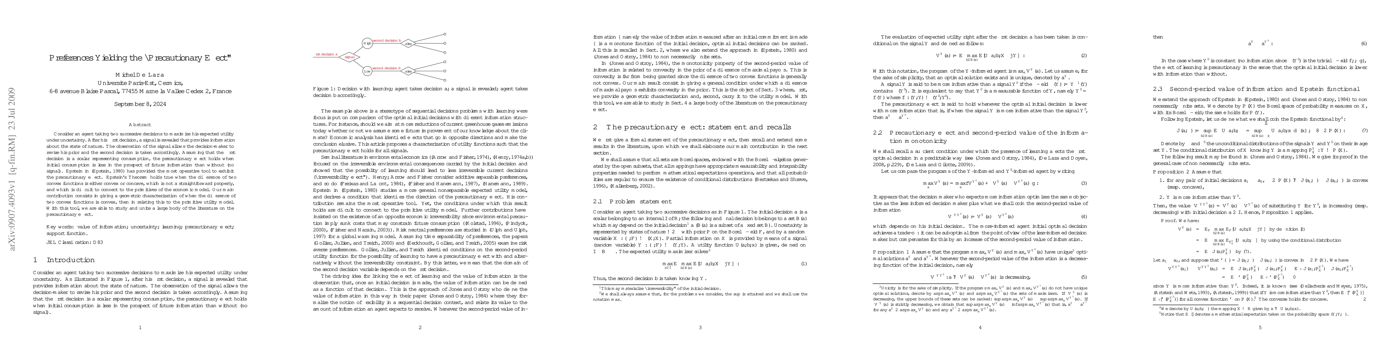Consider an agent taking two successive decisions to maximize his expected utility under uncertainty. After his first decision, a signal is revealed that provides information about the state of nature. The observation of the signal allows the decision-maker to revise his prior and the second decision is taken accordingly. Assuming that the first decision is a scalar representing consumption, the \emph{precautionary effect} holds when initial consumption is less in the prospect of future information than without (no signal). \citeauthor{Epstein1980:decision} in \citep*{Epstein1980:decision} has provided the most operative tool to exhibit the precautionary effect. Epstein's Theorem holds true when the difference of two convex functions is either convex or concave, which is not a straightforward property, and which is difficult to connect to the primitives of the economic model. Our main contribution consists in giving a geometric characterization of when the difference of two convex functions is convex, then in relating this to the primitive utility model. With this tool, we are able to study and unite a large body of the literature on the precautionary effect.