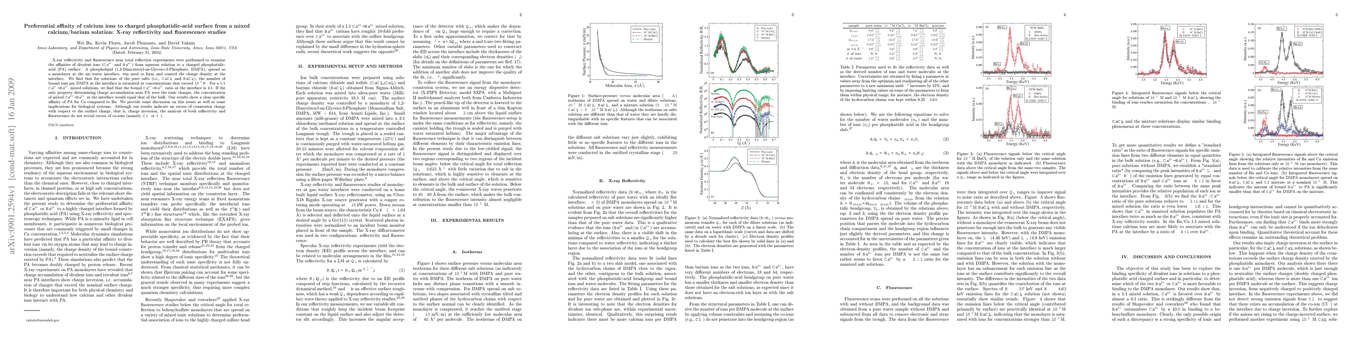 Research finds that calcium ions have a stronger affinity for charged phosphatidic-acid surfaces than barium ions in mixed solutions, with a 4:1 binding ratio at the interface.
