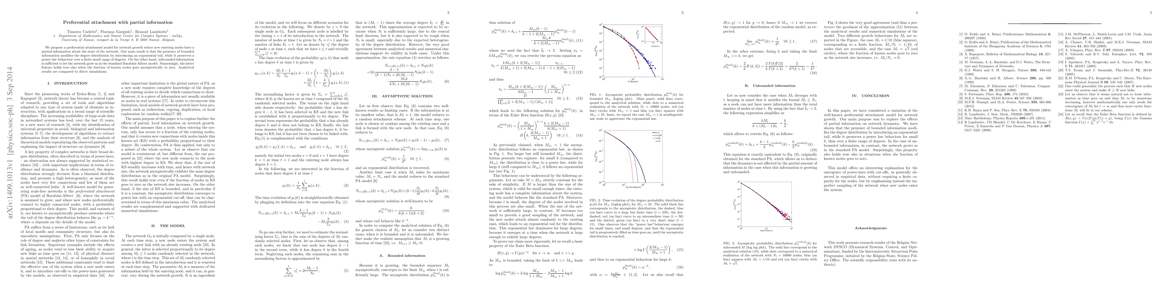 This paper proposes a preferential attachment model where new nodes have limited information about the network, resulting in an exponential tail in the degree distribution while maintaining a power law over a small range. Unbounded information allows the network to grow similarly to the standard Barabási-Albert model, even with a decreasing fraction of known nodes. Analytical results are validated through simulations.