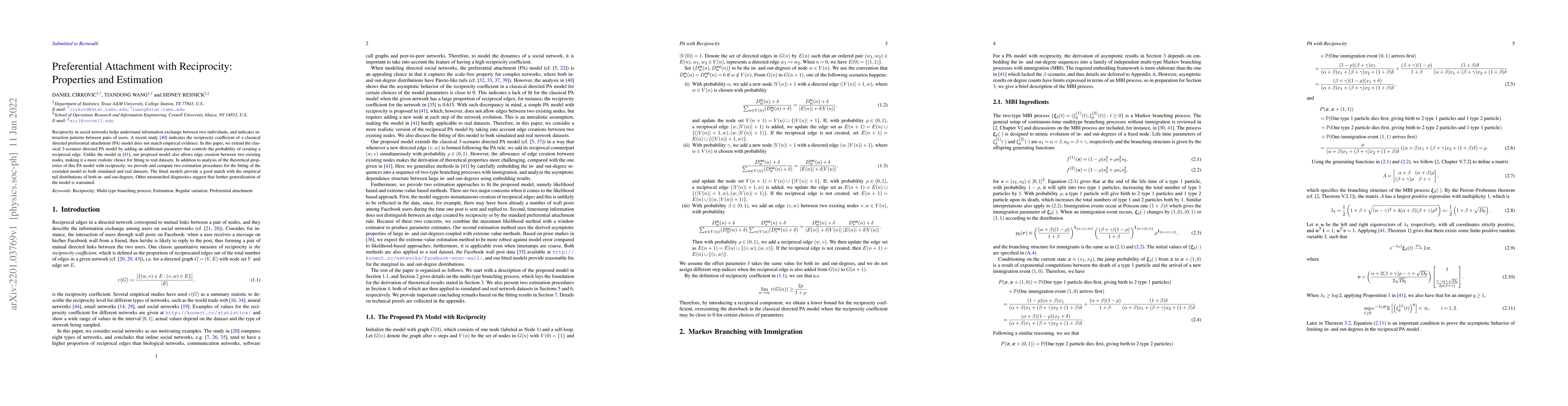 This paper extends a classical directed preferential attachment model by incorporating a reciprocity parameter, aiming to better fit real social network data. It analyzes the theoretical properties of the new model and compares two estimation procedures for fitting it to both simulated and real datasets, showing good alignment with empirical degree distributions but suggesting further model generalization.