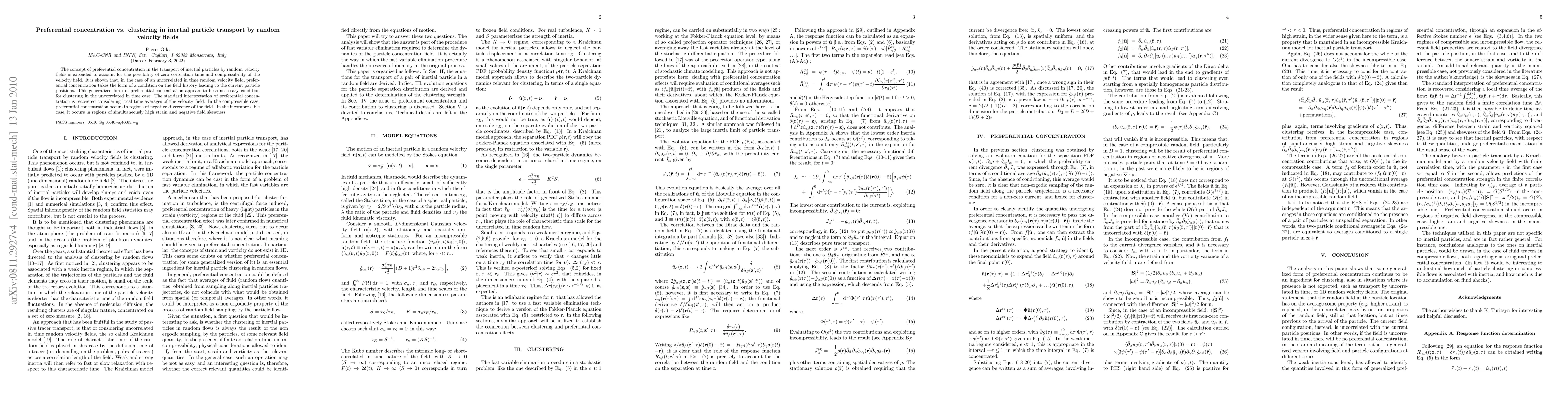 This paper extends the concept of preferential concentration in inertial particle transport by random velocity fields, considering zero correlation time and compressibility. It reveals that in uncorrelated velocity fields, preferential concentration is linked to the field's history, serving as a prerequisite for clustering, while compressibility affects concentration in regions of negative divergence.