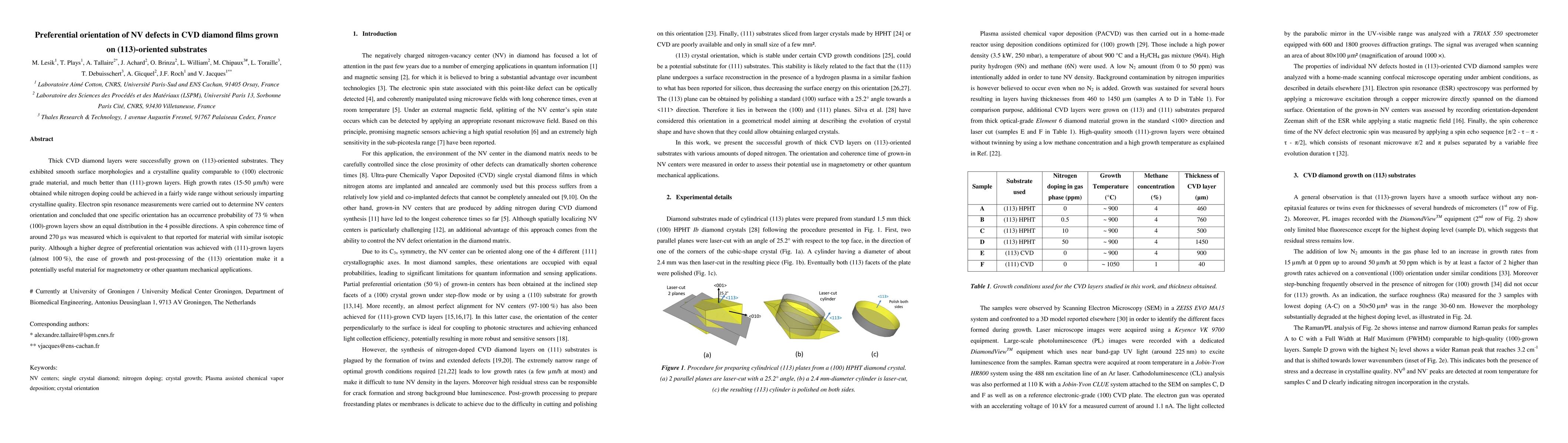 Thick CVD diamond films grown on (113) substrates exhibit smooth surfaces and high growth rates, with NV defects preferentially oriented in one direction at 73% probability. This orientation, along with comparable spin coherence time, suggests utility in magnetometry and quantum applications.