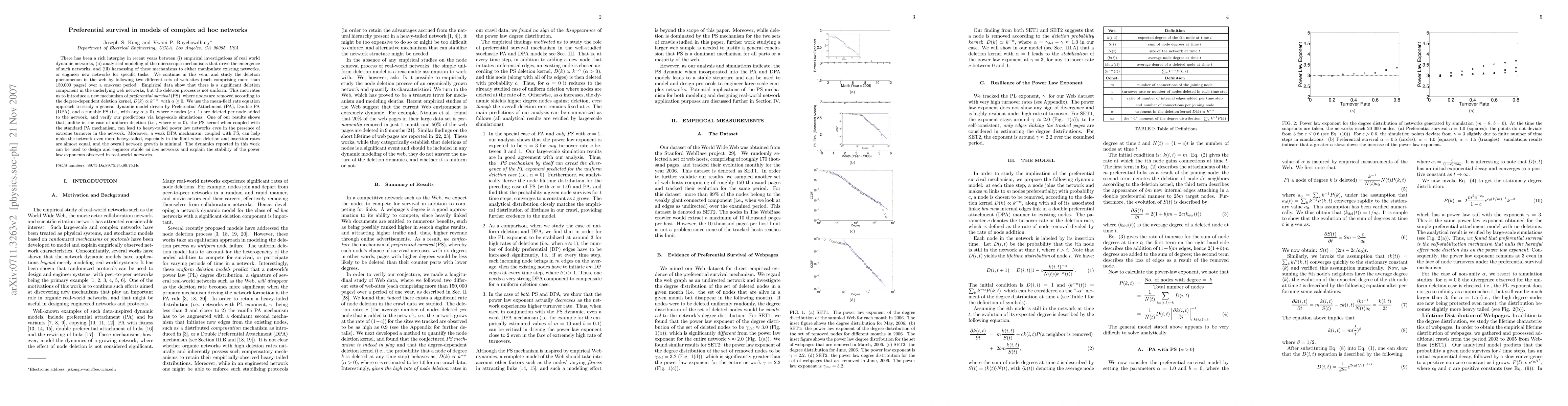 There has been a rich interplay in recent years between (i) empirical investigations of real world dynamic networks, (ii) analytical modeling of the microscopic mechanisms that drive the emergence of such networks, and (iii) harnessing of these mechanisms to either manipulate existing networks, or engineer new networks for specific tasks. We continue in this vein, and study the deletion phenomenon in the web by following two different sets of web-sites (each comprising more than 150,000 pages) over a one-year period. Empirical data show that there is a significant deletion component in the underlying web networks, but the deletion process is not uniform. This motivates us to introduce a new mechanism of preferential survival (PS), where nodes are removed according to a degree-dependent deletion kernel. We use the mean-field rate equation approach to study a general dynamic model driven by Preferential Attachment (PA), Double PA (DPA), and a tunable PS, where c nodes (c<1) are deleted per node added to the network, and verify our predictions via large-scale simulations. One of our results shows that, unlike in the case of uniform deletion, the PS kernel when coupled with the standard PA mechanism, can lead to heavy-tailed power law networks even in the presence of extreme turnover in the network. Moreover, a weak DPA mechanism, coupled with PS, can help make the network even more heavy-tailed, especially in the limit when deletion and insertion rates are almost equal, and the overall network growth is minimal. The dynamics reported in this work can be used to design and engineer stable ad hoc networks and explain the stability of the power law exponents observed in real-world networks.