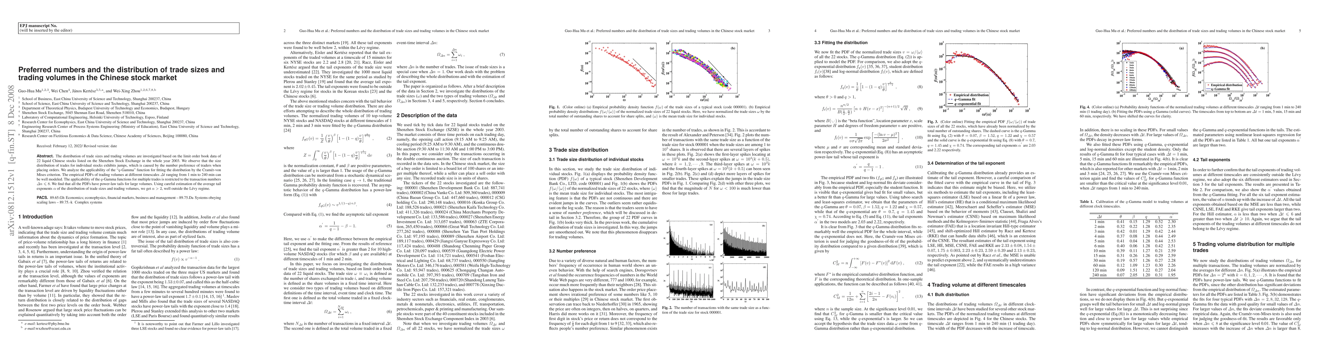 The distribution of trade sizes and trading volumes are investigated based on the limit order book data of 22 liquid Chinese stocks listed on the Shenzhen Stock Exchange in the whole year 2003. We observe that the size distribution of trades for individual stocks exhibits jumps, which is caused by the number preference of traders when placing orders. We analyze the applicability of the "$q$-Gamma" function for fitting the distribution by the Cram\'{e}r-von Mises criterion. The empirical PDFs of trading volumes at different timescales $\Delta{t}$ ranging from 1 min to 240 min can be well modeled. The applicability of the $q$-Gamma functions for multiple trades is restricted to the transaction numbers $\Delta{n}\leqslant8$. We find that all the PDFs have power-law tails for large volumes. Using careful estimation of the average tail exponents $\alpha$ of the distribution of trade sizes and trading volumes, we get $\alpha>2$, well outside the L{\'e}vy regime.