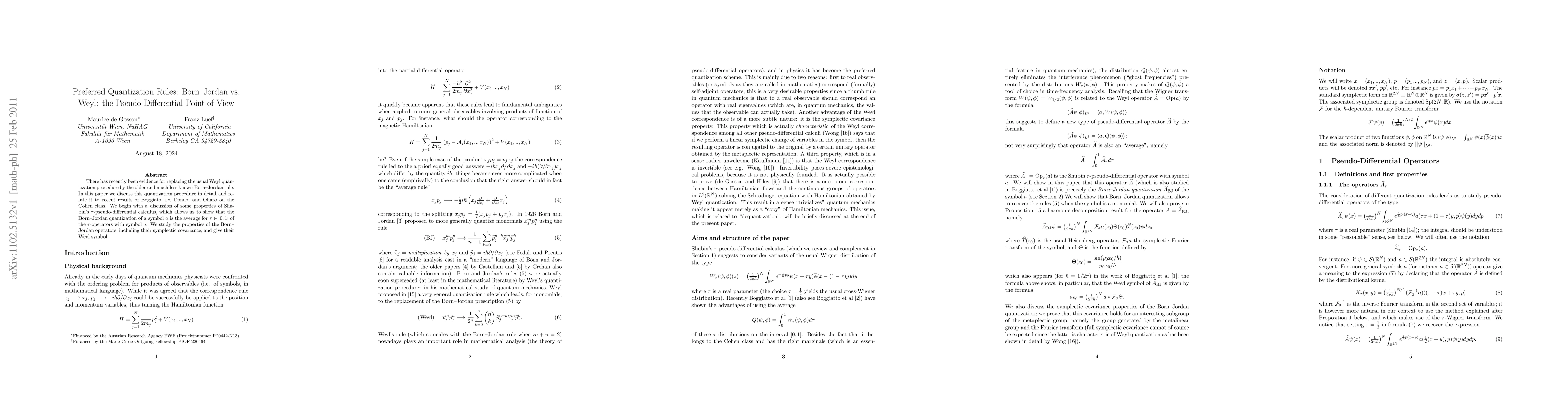 This paper explores the Born-Jordan quantization rule as an alternative to the conventional Weyl quantization method, using Shubin's $\tau$-pseudo-differential calculus to demonstrate its properties. It highlights the symplectic covariance of Born-Jordan operators and connects them to recent findings in the Cohen class.