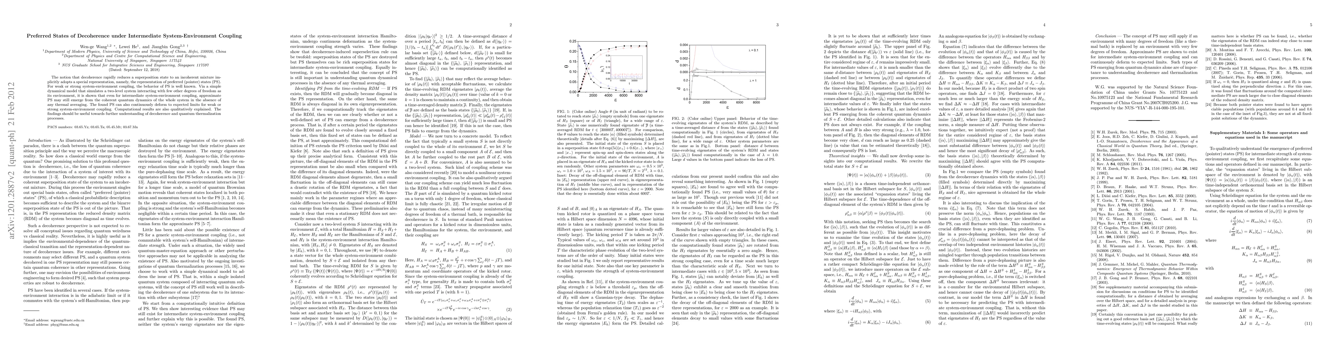 This paper investigates the emergence of preferred states of decoherence under intermediate system-environment coupling, demonstrating that approximate preferred states can arise from coherent quantum dynamics without thermal averaging. These states can transition to known limits for weak or strong coupling, providing insights into decoherence and quantum thermalization processes.
