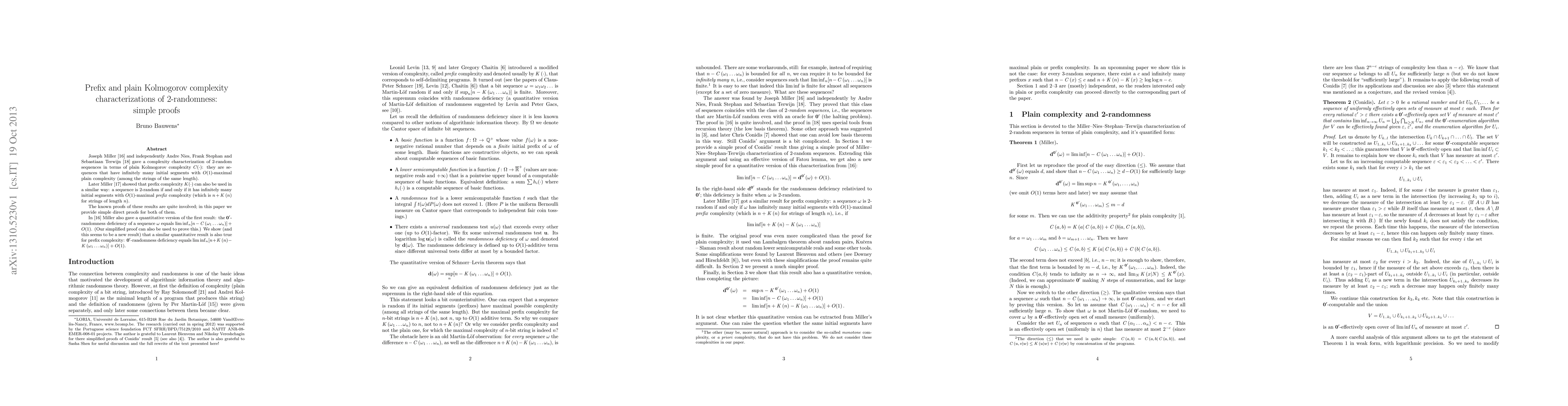 Joseph Miller [16] and independently Andre Nies, Frank Stephan and Sebastiaan Terwijn [18] gave a complexity characterization of 2-random sequences in terms of plain Kolmogorov complexity C: they are sequences that have infinitely many initial segments with O(1)-maximal plain complexity (among the strings of the same length). Later Miller [17] showed that prefix complexity K can also be used in a similar way: a sequence is 2-random if and only if it has infinitely many initial segments with O(1)-maximal prefix complexity (which is n + K (n) for strings of length n). The known proofs of these results are quite involved; in this paper we provide simple direct proofs for both of them. In [16] Miller also gave a quantitative version of the first result: the 0'-randomness deficiency of a sequence {\omega} equals lim inf [n - C ({\omega}1 . . . {\omega}n)] + O(1). (Our simplified proof can also be used to prove this.) We show (and this seems to be a new result) that a similar quantitative result is also true for prefix complexity: 0'-randomness deficiency equals lim inf [n + K (n) -- K ({\omega}1 . . . {\omega}n)] + O(1).