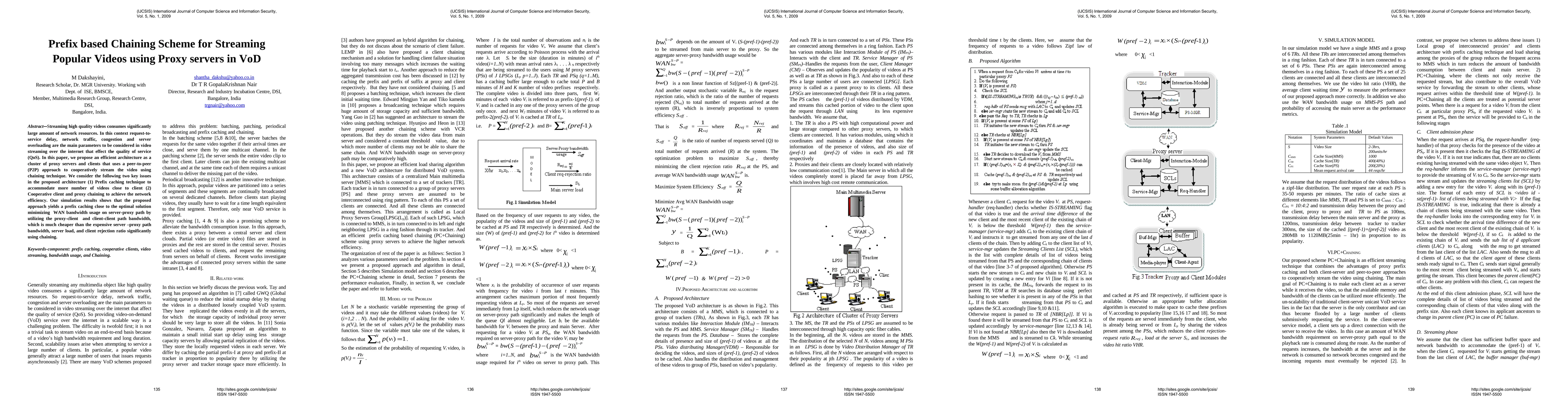 This paper proposes a P2P streaming architecture using proxy servers to efficiently stream popular videos, focusing on minimizing network congestion and server overload. The approach leverages prefix caching and cooperative client-proxy chaining to optimize bandwidth usage and reduce server load, achieving significant improvements in QoS.