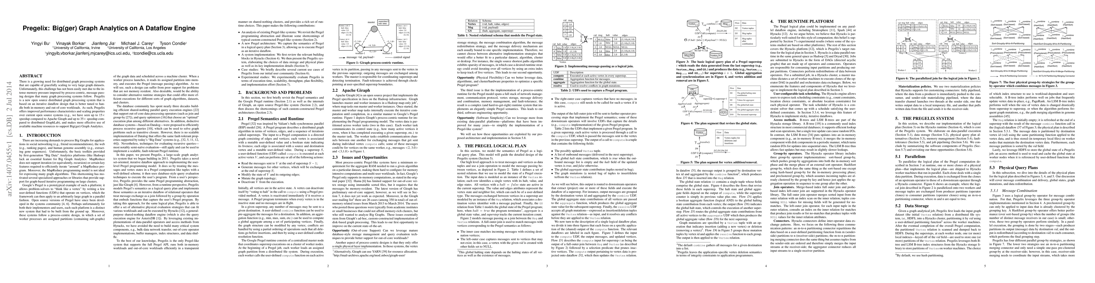 Pregelix is an open-source distributed graph processing system based on an iterative dataflow design, offering improved scalability and performance for large graph datasets. It demonstrates up to 15x speedup over Apache Giraph and up to 35x over distributed GraphLab, effectively utilizing machine resources for enhanced graph analytics.