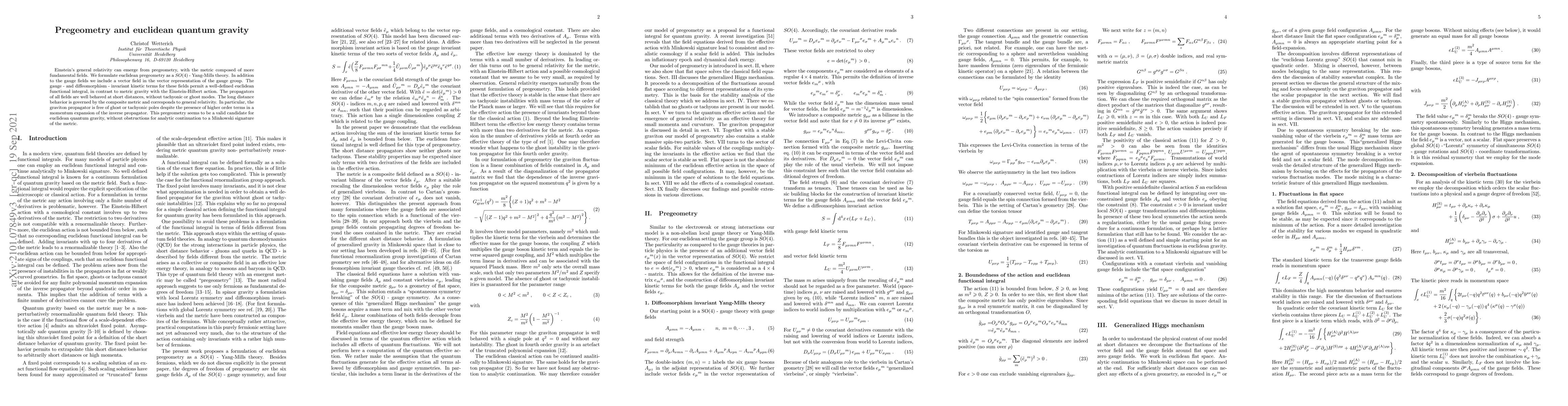 Einstein's general relativity can emerge from pregeometry, with the metric composed of more fundamental fields. We formulate euclidean pregeometry as a $SO(4)$ - Yang-Mills theory. In addition to the gauge fields we include a vector field in the vector representation of the gauge group. The gauge - and diffeomorphism - invariant kinetic terms for these fields permit a well-defined euclidean functional integral, in contrast to metric gravity with the Einstein-Hilbert action. The propagators of all fields are well behaved at short distances, without tachyonic or ghost modes. The long distance behavior is governed by the composite metric and corresponds to general relativity. In particular, the graviton propagator is free of ghost or tachyonic poles despite the presence of higher order terms in a momentum expansion of the inverse propagator. This pregeometry seems to be a valid candidate for euclidean quantum gravity, without obstructions for analytic continuation to a Minkowski signature of the metric.