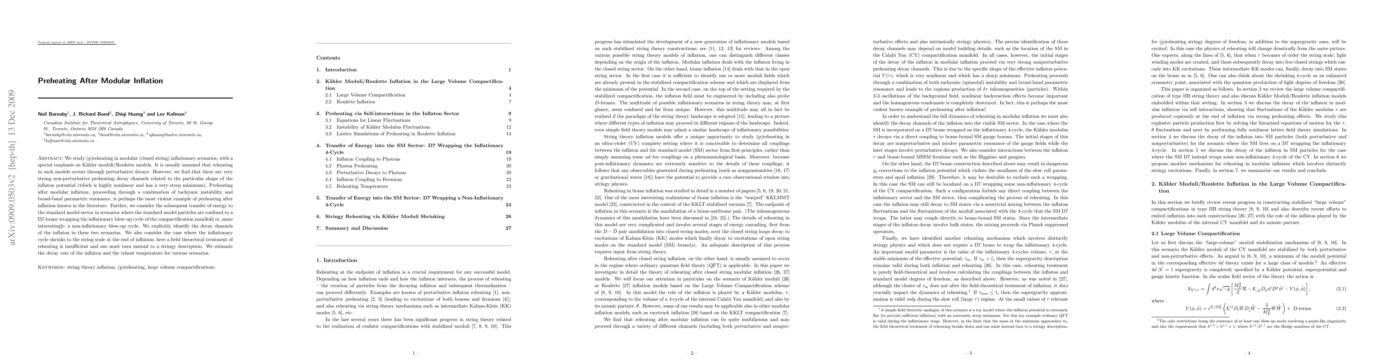Researchers study preheating in modular inflationary scenarios, finding strong non-perturbative decay channels that make reheating after inflation the most violent example known, with implications for energy transfer to the standard model sector.