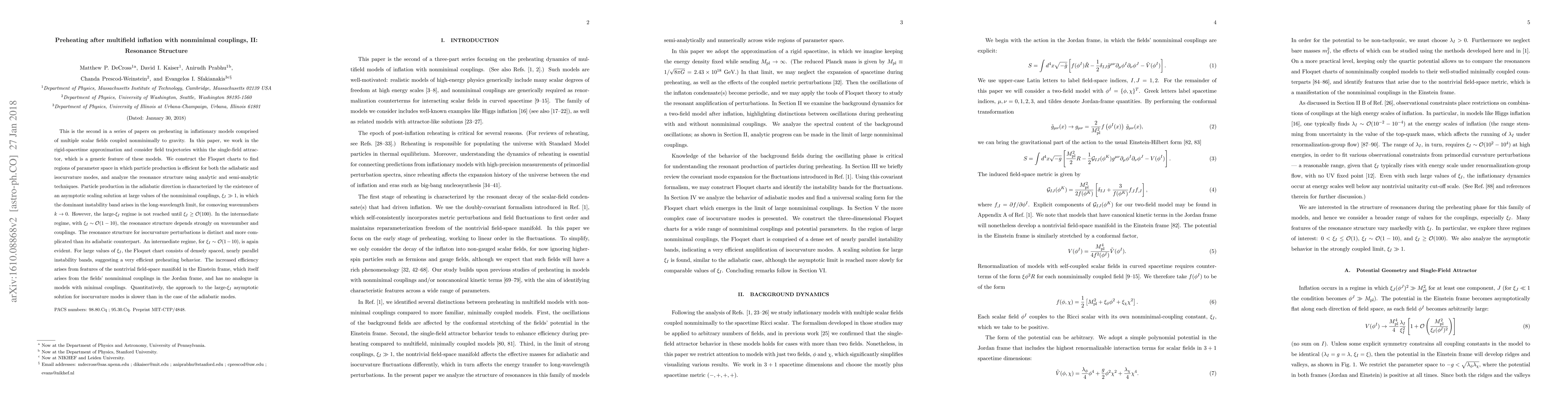 This is the second in a series of papers on preheating in inflationary models comprised of multiple scalar fields coupled nonminimally to gravity. In this paper, we work in the rigid-spacetime approximation and consider field trajectories within the single-field attractor, which is a generic feature of these models. We construct the Floquet charts to find regions of parameter space in which particle production is efficient for both the adiabatic and isocurvature modes, and analyze the resonance structure using analytic and semi-analytic techniques. Particle production in the adiabatic direction is characterized by the existence of an asymptotic scaling solution at large values of the nonminimal couplings, $\xi_I \gg 1$, in which the dominant instability band arises in the long-wavelength limit, for comoving wavenumbers $k \rightarrow 0$. However, the large-$\xi_I$ regime is not reached until $\xi_I \geq {\cal O} (100)$. In the intermediate regime, with $\xi_I \sim {\cal O}(1 - 10)$, the resonance structure depends strongly on wavenumber and couplings. The resonance structure for isocurvature perturbations is distinct and more complicated than its adiabatic counterpart. An intermediate regime, for $\xi_I \sim {\cal O} (1 - 10)$, is again evident. For large values of $\xi_I$, the Floquet chart consists of densely spaced, nearly parallel instability bands, suggesting a very efficient preheating behavior. The increased efficiency arises from features of the nontrivial field-space manifold in the Einstein frame, which itself arises from the fields' nonminimal couplings in the Jordan frame, and has no analogue in models with minimal couplings. Quantitatively, the approach to the large-$\xi_I$ asymptotic solution for isocurvature modes is slower than in the case of the adiabatic modes.