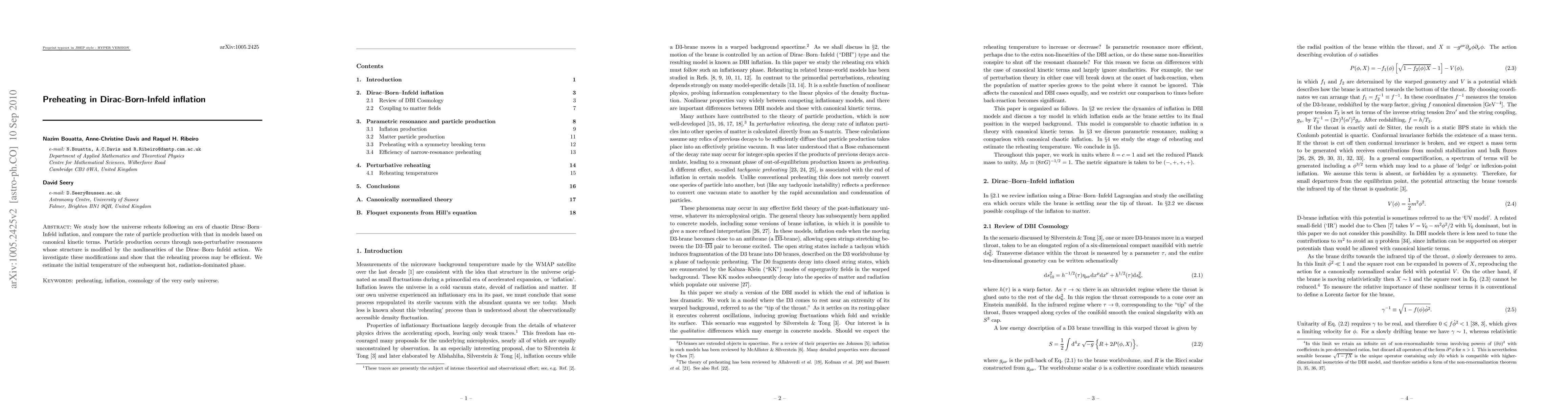 We study how the universe reheats following an era of chaotic Dirac-Born-Infeld inflation, and compare the rate of particle production with that in models based on canonical kinetic terms. Particle production occurs through non-perturbative resonances whose structure is modified by the nonlinearities of the Dirac-Born-Infeld action. We investigate these modifications and show that the reheating process may be efficient. We estimate the initial temperature of the subsequent hot, radiation-dominated phase.