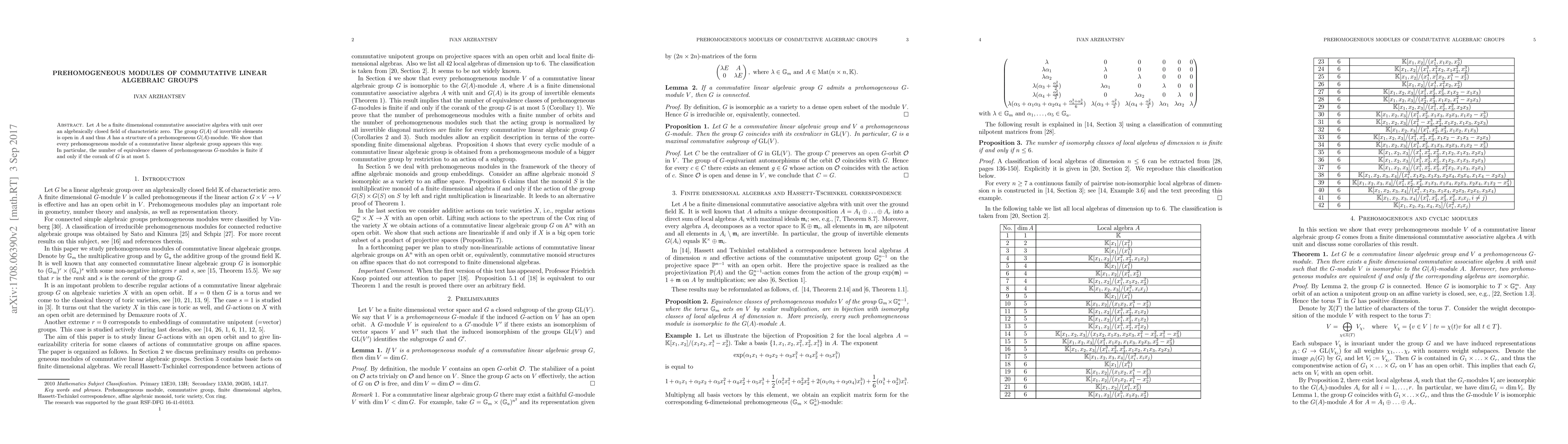 Let $A$ be a finite dimensional commutative associative algebra with unit over an algebraically closed field of characteristic zero. The group $G(A)$ of invertible elements is open in $A$ and thus $A$ has a structure of a prehomogeneous $G(A)$-module. We show that every prehomogeneous module of a commutative linear algebraic group appears this way. In particular, the number of equivalence classes of prehomogeneous $G$-modules is finite if and only if the corank of $G$ is at most $5$.