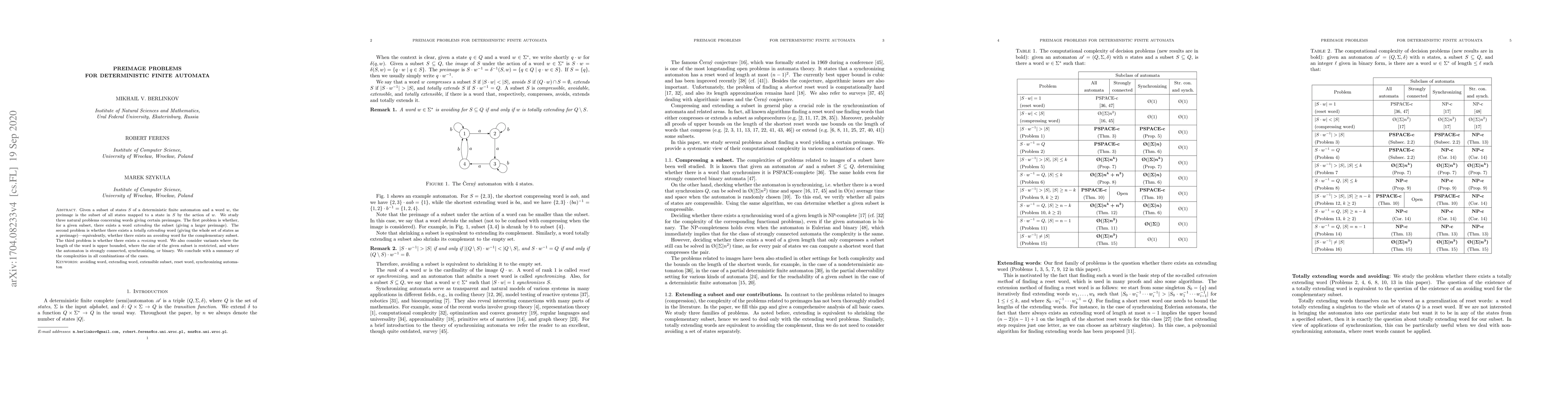 Given a subset of states $S$ of a deterministic finite automaton and a word $w$, the preimage is the subset of all states mapped to a state in $S$ by the action of $w$. We study three natural problems concerning words giving certain preimages. The first problem is whether, for a given subset, there exists a word \emph{extending} the subset (giving a larger preimage). The second problem is whether there exists a \emph{totally extending} word (giving the whole set of states as a preimage)---equivalently, whether there exists an \emph{avoiding} word for the complementary subset. The third problem is whether there exists a \emph{resizing} word. We also consider variants where the length of the word is upper bounded, where the size of the given subset is restricted, and where the automaton is strongly connected, synchronizing, or binary. We conclude with a summary of the complexities in all combinations of the cases.