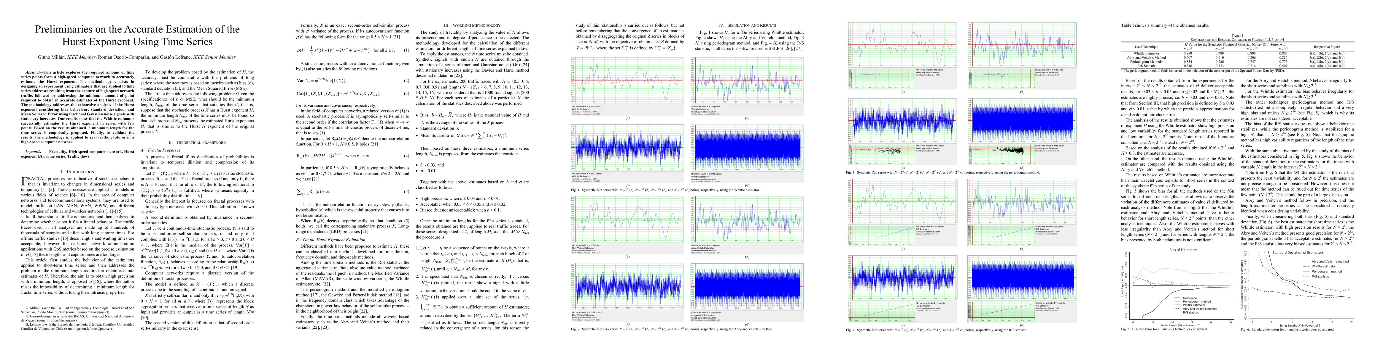 This article explores the required amount of time series points from a high-speed computer network to accurately estimate the Hurst exponent. The methodology consists in designing an experiment using estimators that are applied to time series addresses resulting from the capture of high-speed network traffic, followed by addressing the minimum amount of point required to obtain in accurate estimates of the Hurst exponent. The methodology addresses the exhaustive analysis of the Hurst exponent considering bias behaviour, standard deviation, and Mean Squared Error using fractional Gaussian noise signals with stationary increases. Our results show that the Whittle estimator successfully estimates the Hurst exponent in series with few points. Based on the results obtained, a minimum length for the time series is empirically proposed. Finally, to validate the results, the methodology is applied to real traffic captures in a high-speed computer network.