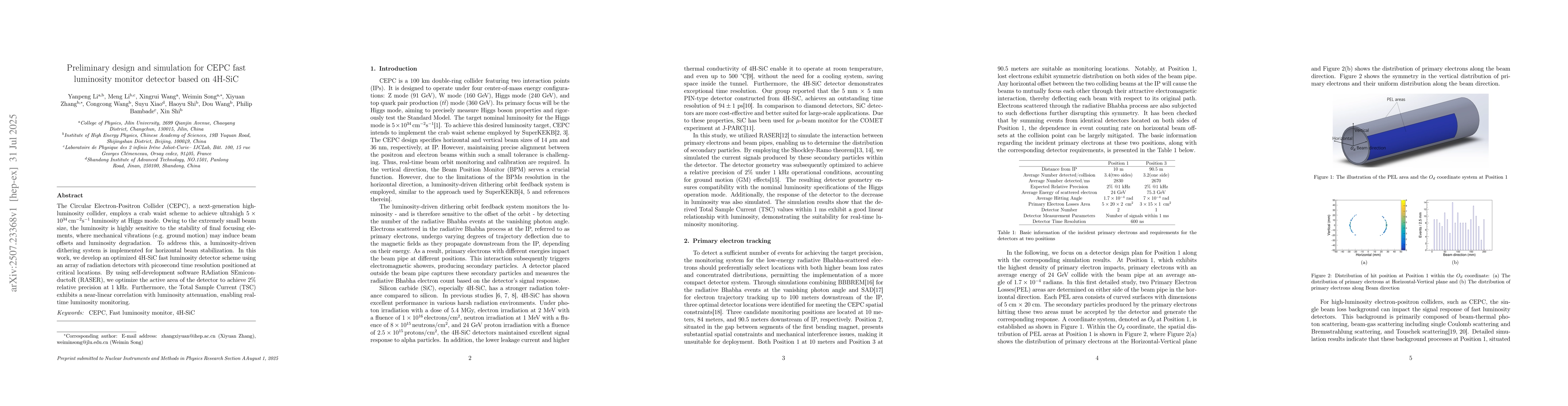 The Circular Electron-Positron Collider (CEPC), a next-generation high-luminosity collider, employs a crab waist scheme to achieve ultrahigh $5 \times 10^{34} \, \text{cm}^{-2}\text{s}^{-1}$ luminosity at Higgs mode. Owing to the extremely small beam size, the luminosity is highly sensitive to the stability of final focusing elements, where mechanical vibrations (e.g. ground motion) may induce beam offsets and luminosity degradation. To address this, a luminosity-driven dithering system is implemented for horizontal beam stabilization. In this work, we develop an optimized 4H-SiC fast luminosity detector scheme using an array of radiation detectors with picosecond time resolution positioned at critical locations. By using self-development software RAdiation SEmiconductoR (RASER), we optimize the active area of the detector to achieve 2\% relative precision at 1~kHz. Furthermore, the Total Sample Current (TSC) exhibits a near-linear correlation with luminosity attenuation, enabling real-time luminosity monitoring.