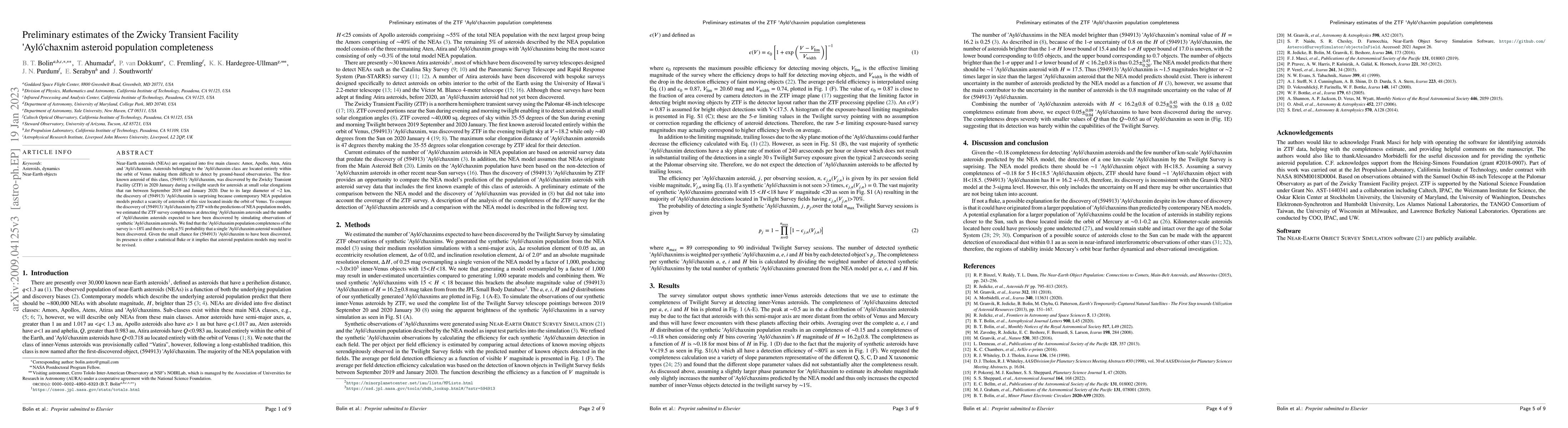 The Zwicky Transient Facility (ZTF) discovered the first 'Ayló'chaxnim asteroid, (594913), challenging existing models predicting few large asteroids within Venus's orbit. The ZTF survey's completeness for detecting 'Ayló'chaxnim asteroids is estimated to be around 18%, suggesting the discovery may indicate a need to revise asteroid population models.