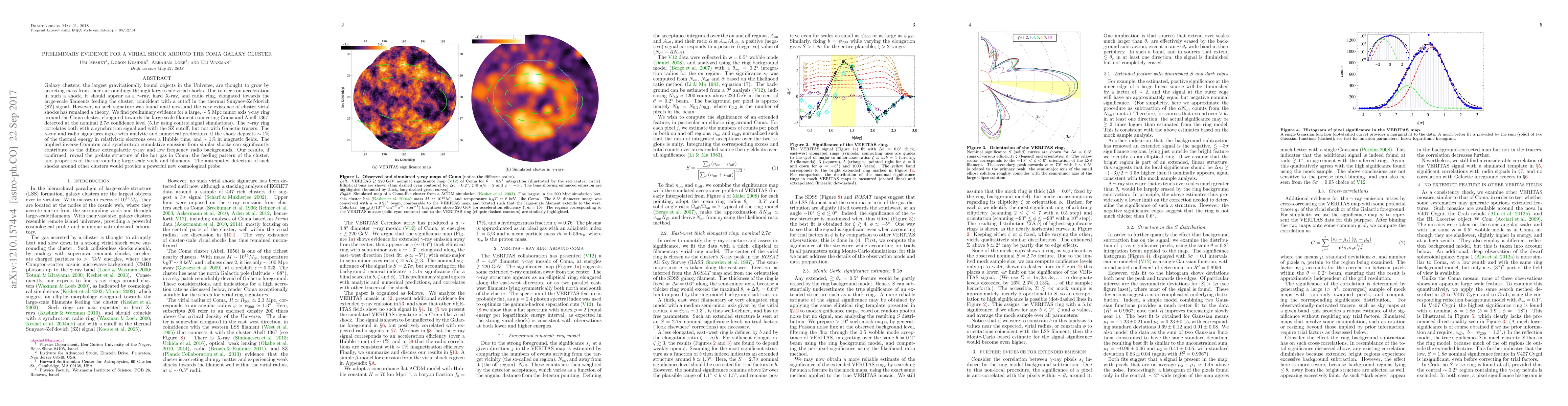 This paper presents preliminary evidence for a $\gamma$-ray ring around the Coma galaxy cluster, suggesting the existence of a virial shock. The detected ring correlates with synchrotron signals and a cutoff in the thermal Sunyaev-Zel'dovich signal, supporting theoretical predictions of cluster virial shocks and their contribution to extragalactic $\gamma$-ray and radio backgrounds.