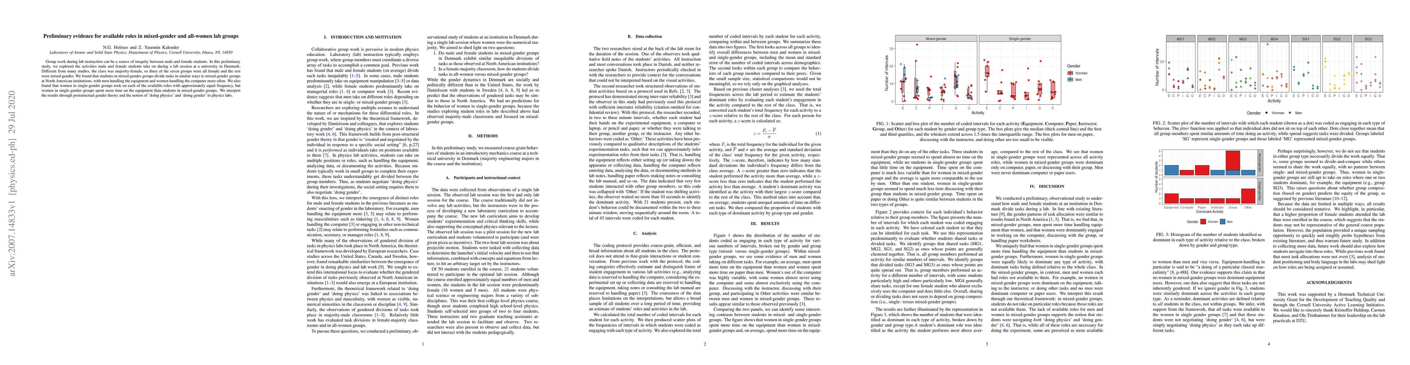 This preliminary study investigates task division in mixed-gender and all-female lab groups at a Danish university, finding that men in mixed-gender groups often handle equipment while women manage computers, whereas women in single-gender groups equally distribute roles but spend more time on equipment. The findings are interpreted through a poststructural gender lens.