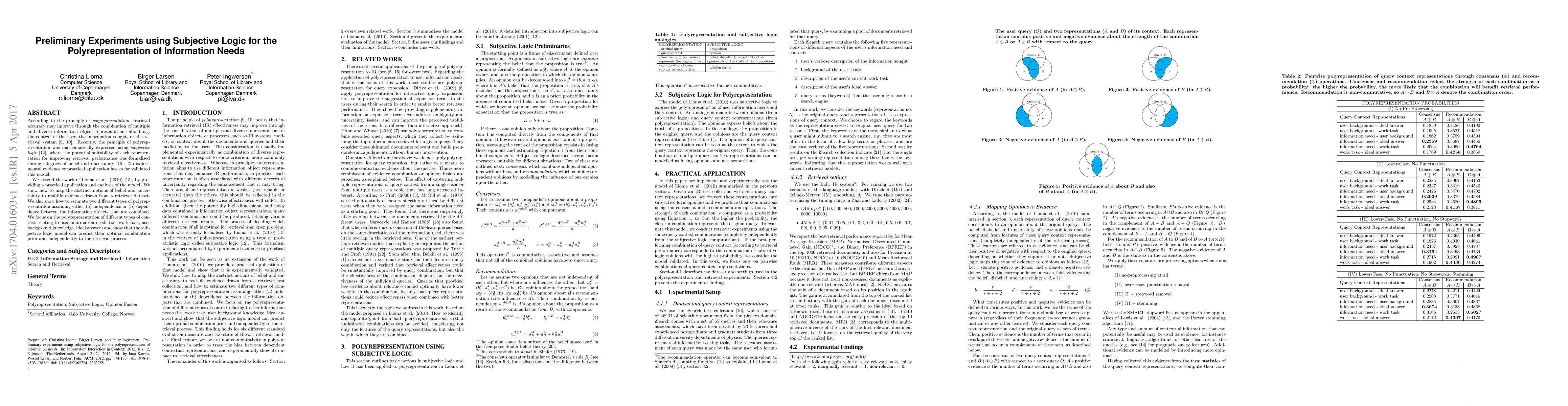 According to the principle of polyrepresentation, retrieval accuracy may improve through the combination of multiple and diverse information object representations about e.g. the context of the user, the information sought, or the retrieval system. Recently, the principle of polyrepresentation was mathematically expressed using subjective logic, where the potential suitability of each representation for improving retrieval performance was formalised through degrees of belief and uncertainty. No experimental evidence or practical application has so far validated this model. We extend the work of Lioma et al. (2010), by providing a practical application and analysis of the model. We show how to map the abstract notions of belief and uncertainty to real-life evidence drawn from a retrieval dataset. We also show how to estimate two different types of polyrepresentation assuming either (a) independence or (b) dependence between the information objects that are combined. We focus on the polyrepresentation of different types of context relating to user information needs (i.e. work task, user background knowledge, ideal answer) and show that the subjective logic model can predict their optimal combination prior and independently to the retrieval process.