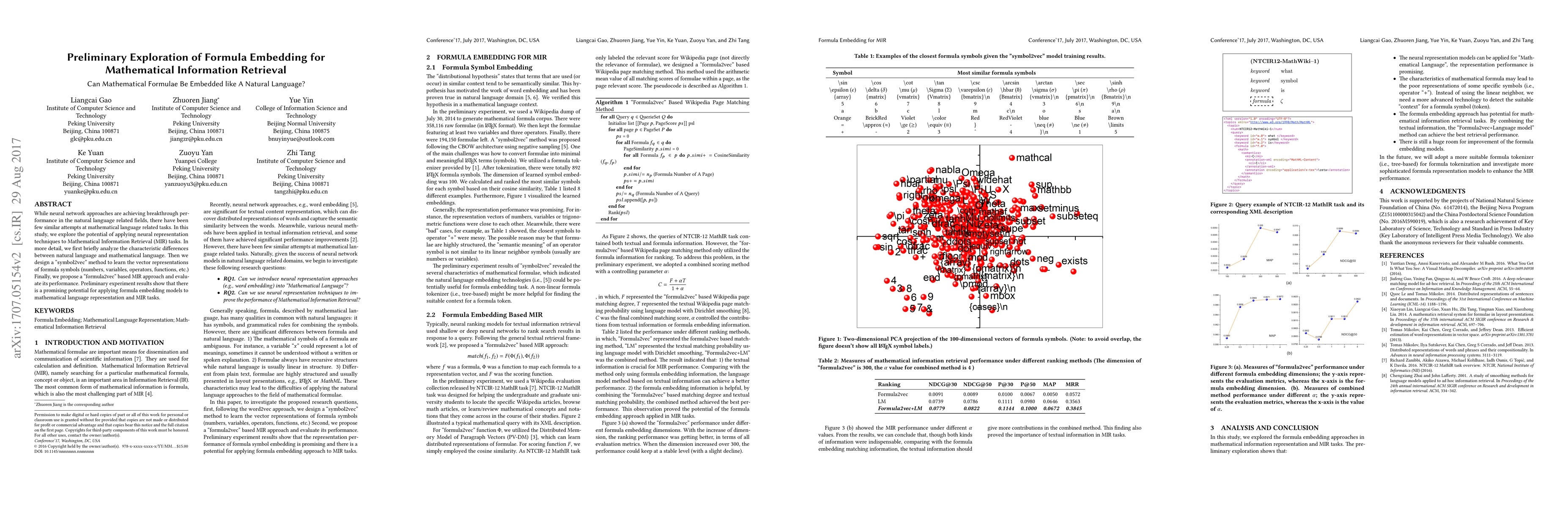 While neural network approaches are achieving breakthrough performance in the natural language related fields, there have been few similar attempts at mathematical language related tasks. In this study, we explore the potential of applying neural representation techniques to Mathematical Information Retrieval (MIR) tasks. In more detail, we first briefly analyze the characteristic differences between natural language and mathematical language. Then we design a "symbol2vec" method to learn the vector representations of formula symbols (numbers, variables, operators, functions, etc.) Finally, we propose a "formula2vec" based MIR approach and evaluate its performance. Preliminary experiment results show that there is a promising potential for applying formula embedding models to mathematical language representation and MIR tasks.