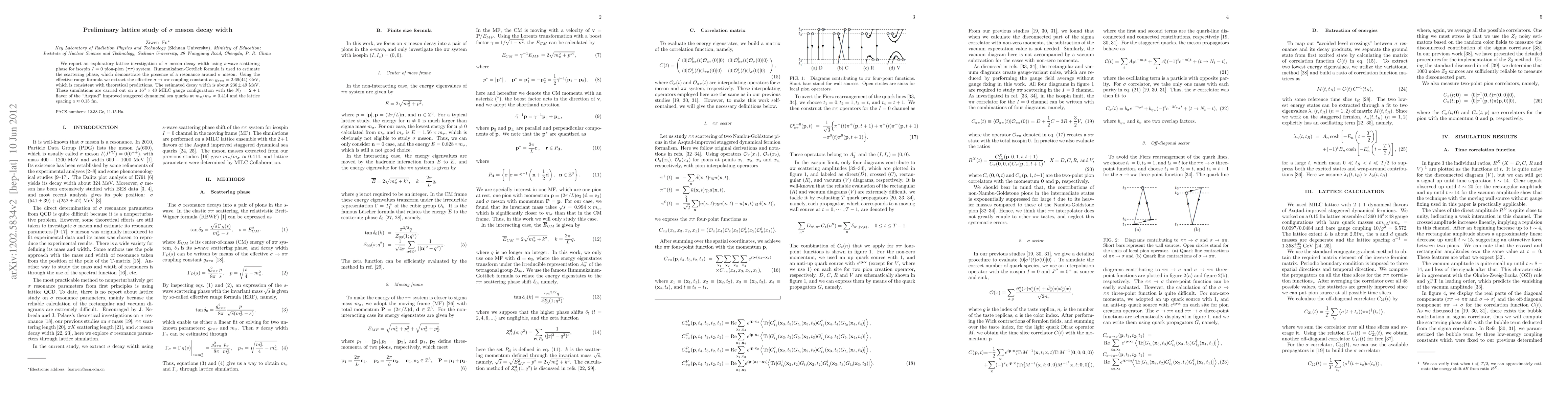 This lattice study uses the Rummukainen-Gottlieb formula to investigate the $sigma$ meson decay width via s-wave scattering phase in isospin I=0 pion-pion system. The effective $sigma o pipi$ coupling constant is estimated as $g_{sigma pipi} = 2.69(44)$ GeV, aligning with theoretical predictions, and a decay width of approximately $236 pm 49$ MeV is reported.