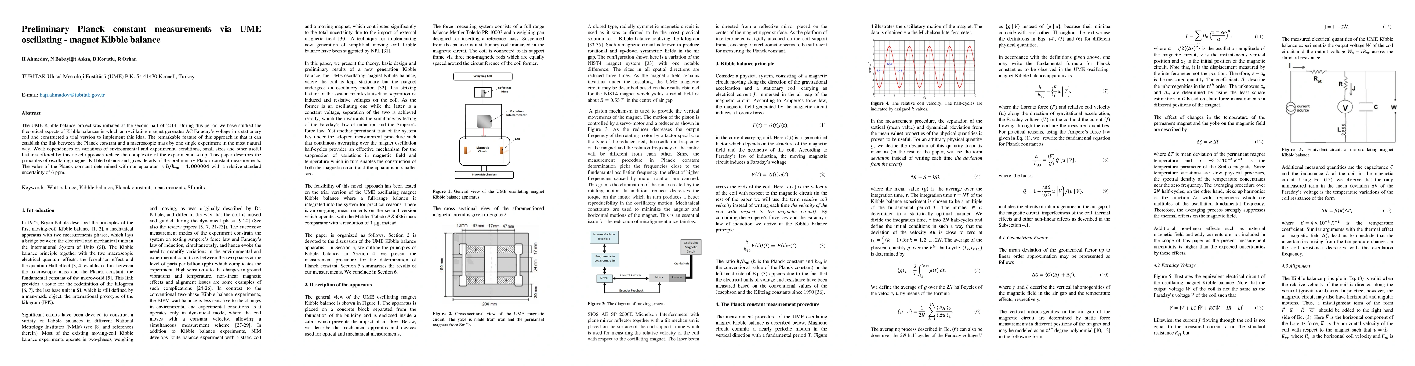 Researchers have successfully measured the Planck constant using a novel UME oscillating magnet Kibble balance method, achieving a value with a relative standard uncertainty of 6 ppm.