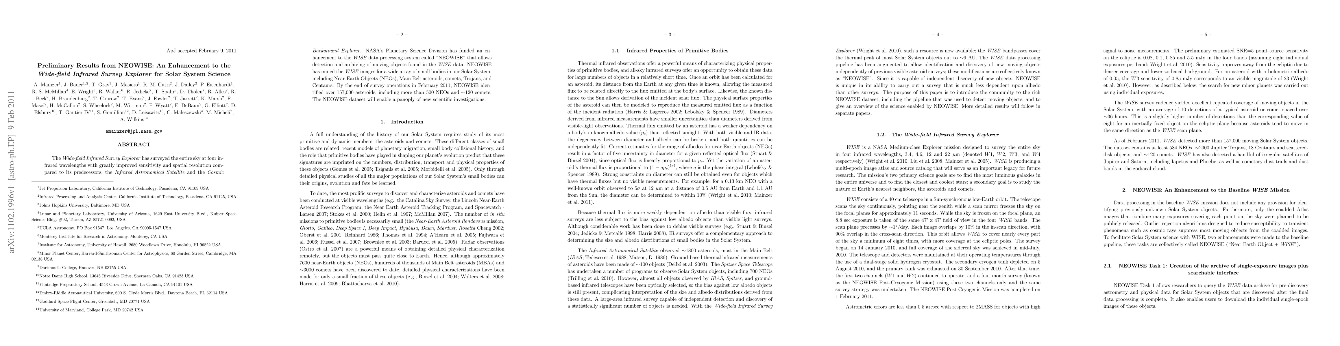 The NEOWISE enhancement of the Wide-field Infrared Survey Explorer (WISE) has identified over 157,000 asteroids, including more than 500 Near-Earth Objects and 120 comets, significantly advancing our understanding of Solar System small bodies. The dataset will facilitate numerous new scientific investigations in planetary science.