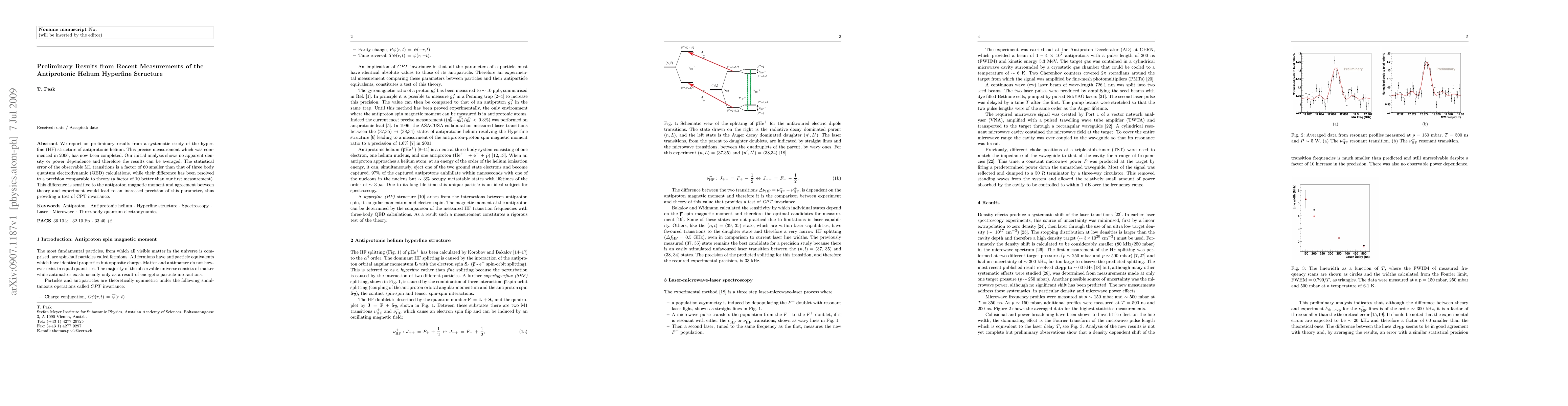 We report on preliminary results from a systematic study of the hyperfine (HF) structure of antiprotonic helium. This precise measurement which was commenced in 2006, has now been completed. Our initial analysis shows no apparent density or power dependence and therefore the results can be averaged. The statistical error of the observable M1 transitions is a factor of 60 smaller than that of three body quantum electrodynamic (QED) calculations, while their difference has been resolved to a precision comparable to theory (a factor of 10 better than our first measurement). This difference is sensitive to the antiproton magnetic moment and agreement between theory and experiment would lead to an increased precision of this parameter, thus providing a test of CPT invariance.