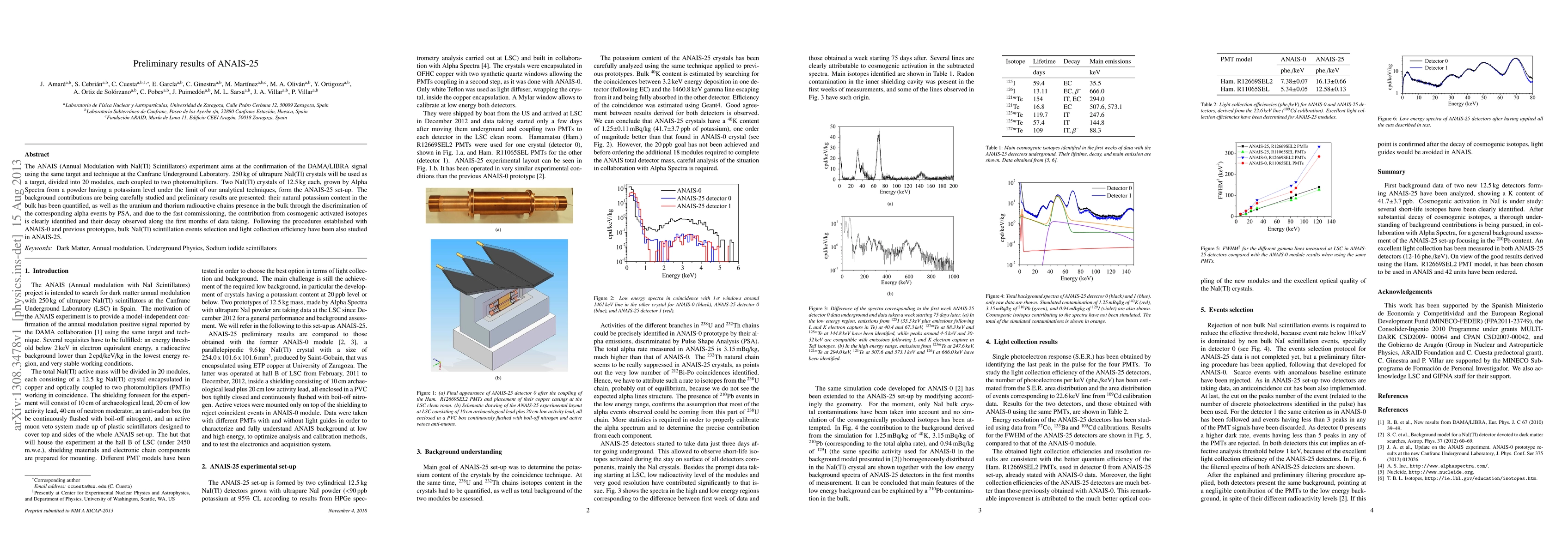 The ANAIS (Annual Modulation with NaI(Tl) Scintillators) experiment aims at the confirmation of the DAMA/LIBRA signal using the same target and technique at the Canfranc Underground Laboratory. 250 kg of ultrapure NaI(Tl) crystals will be used as a target, divided into 20 modules, each coupled to two photomultipliers. Two NaI(Tl) crystals of 12.5 kg each, grown by Alpha Spectra from a powder having a potassium level under the limit of our analytical techniques, form the ANAIS-25 set-up. The background contributions are being carefully studied and preliminary results are presented: their natural potassium content in the bulk has been quantified, as well as the uranium and thorium radioactive chains presence in the bulk through the discrimination of the corresponding alpha events by PSA, and due to the fast commissioning, the contribution from cosmogenic activated isotopes is clearly identified and their decay observed along the first months of data taking. Following the procedures established with ANAIS-0 and previous prototypes, bulk NaI(Tl) scintillation events selection and light collection efficiency have been also studied in ANAIS-25.