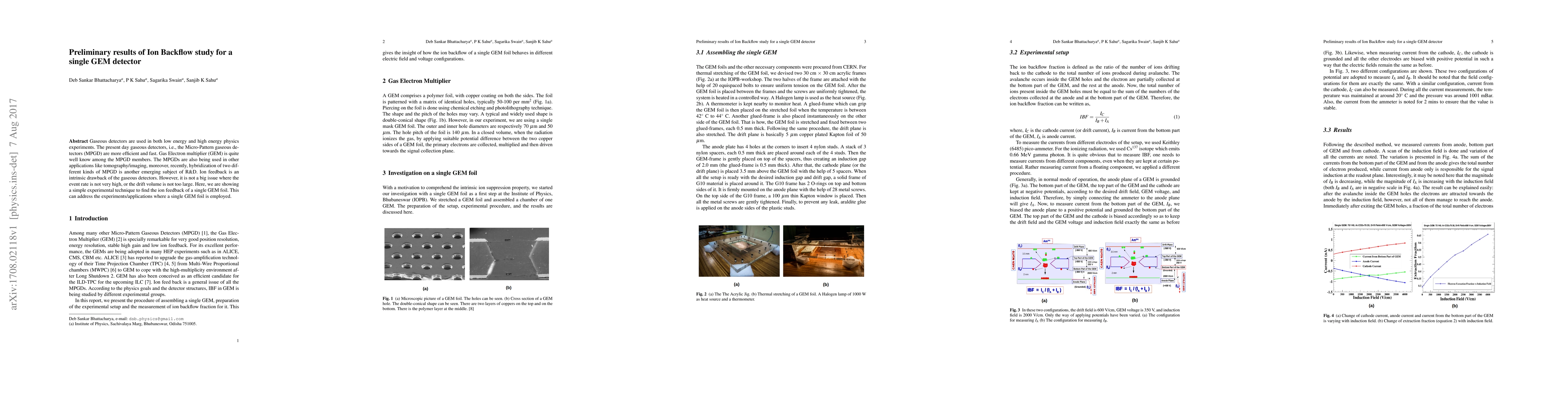 The study presents a simple experimental technique for measuring ion backflow fraction in a single GEM detector.