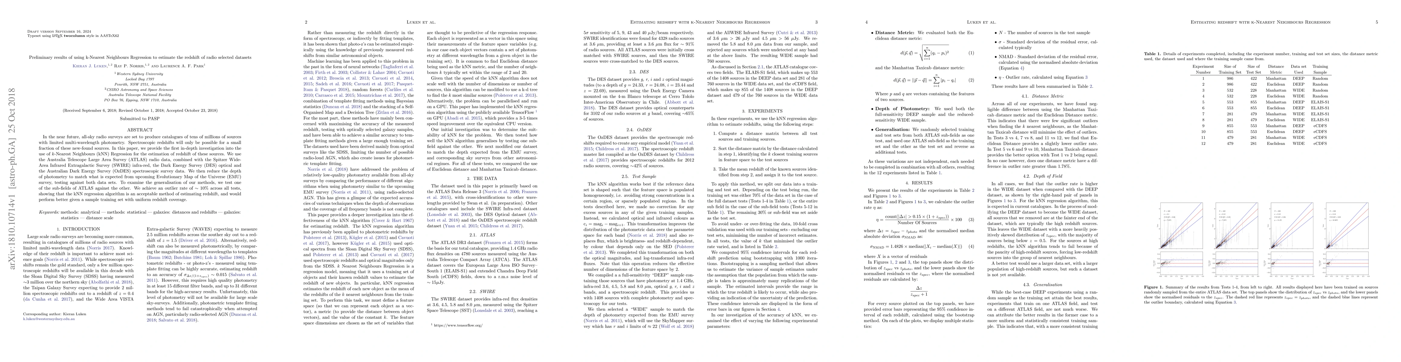 This paper explores k-Nearest Neighbours Regression to estimate redshifts for radio-selected datasets with limited multi-wavelength photometry. The method shows an acceptable 10% outlier rate, indicating its potential for future use with larger, more uniform training datasets.