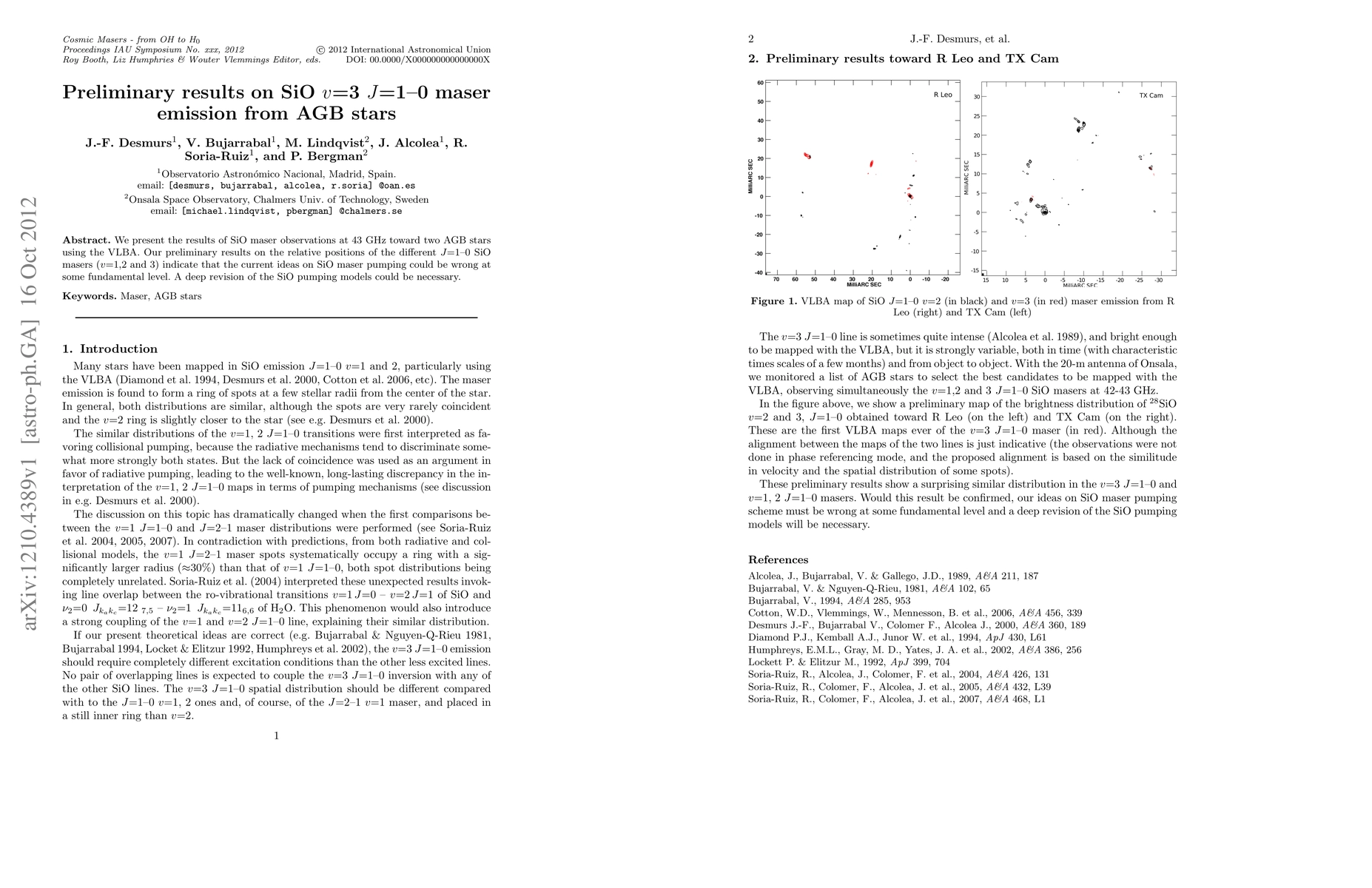 We present the results of SiO maser observations at 43GHz toward two AGB stars using the VLBA. Our preliminary results on the relative positions of the different J=1-0 SiO masers (v=1,2 and 3) indicate that the current ideas on SiO maser pumping could be wrong at some fundamental level. A deep revision of the SiO pumping models could be necessary.