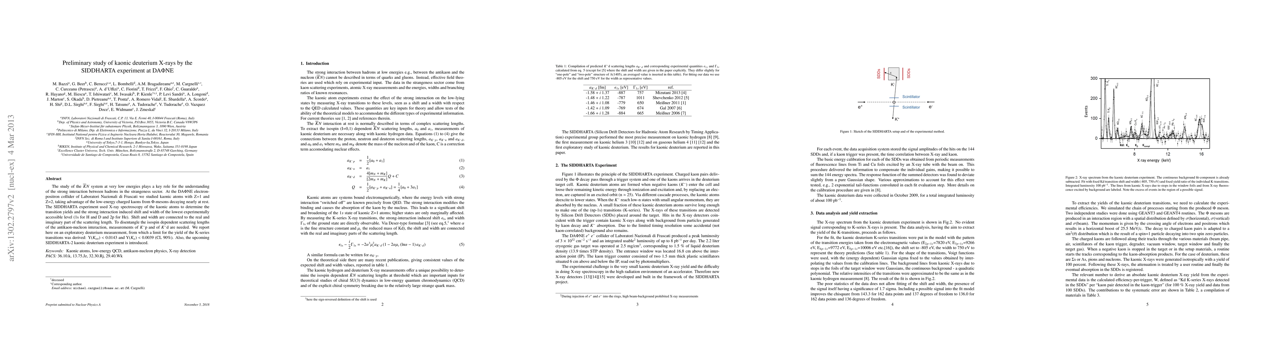 The study of the KbarN system at very low energies plays a key role for the understanding of the strong interaction between hadrons in the strangeness sector. At the DAFNE electron-positron collider of Laboratori Nazionali di Frascati we studied kaonic atoms with Z=1 and Z=2, taking advantage of the low-energy charged kaons from Phi-mesons decaying nearly at rest. The SIDDHARTA experiment used X-ray spectroscopy of the kaonic atoms to determine the transition yields and the strong interaction induced shift and width of the lowest experimentally accessible level (1s for H and D and 2p for He). Shift and width are connected to the real and imaginary part of the scattering length. To disentangle the isospin dependent scattering lengths of the antikaon-nucleon interaction, measurements of Kp and of Kd are needed. We report here on an exploratory deuterium measurement, from which a limit for the yield of the K-series transitions was derived: Y(K_tot)<0.0143 and Y(K_alpha)<0.0039 (CL 90%). Also, the upcoming SIDDHARTA-2 kaonic deuterium experiment is introduced.