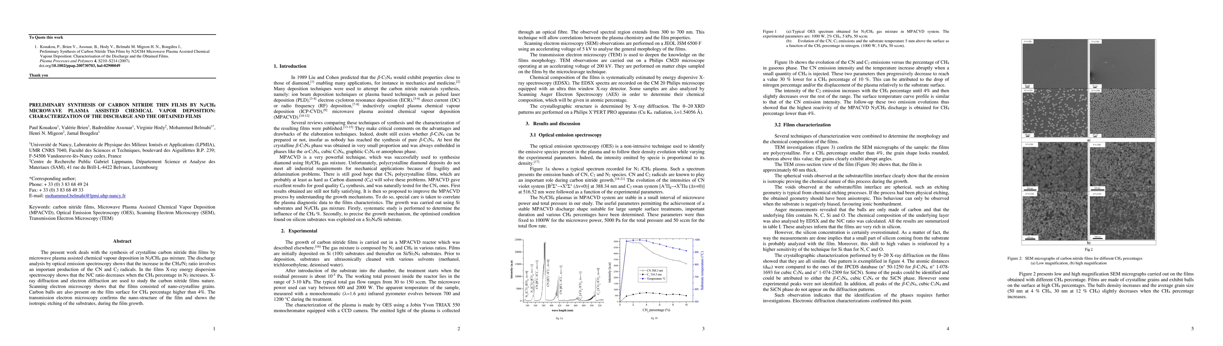 This work is novel in its use of MPACVD to synthesise nano-crystalline carbon nitride films and proposed growth mechanism.