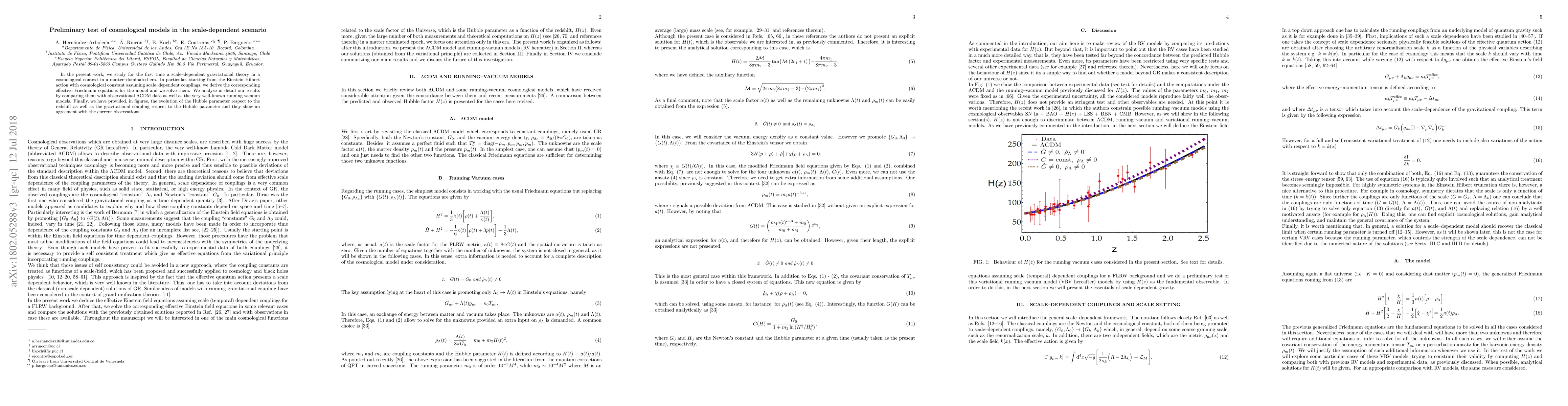 In the present work, we study for the first time a scale--dependent gravitational theory in a cosmological context in a matter--dominated era. In particular, starting from the Einstein Hilbert action with cosmological constant assuming scale--dependent couplings, we derive the corresponding effective Friedmann equations for the model and we solve them. We analyse in detail our results by comparing them with observational $\Lambda$CDM data as well as the very well-known running vacuum models. Finally, we have provided, in figures, the evolution of the Hubble parameter respect to the redshift as well as the gravitational coupling respect to the Hubble parameter and they show an agreement with the current observations.