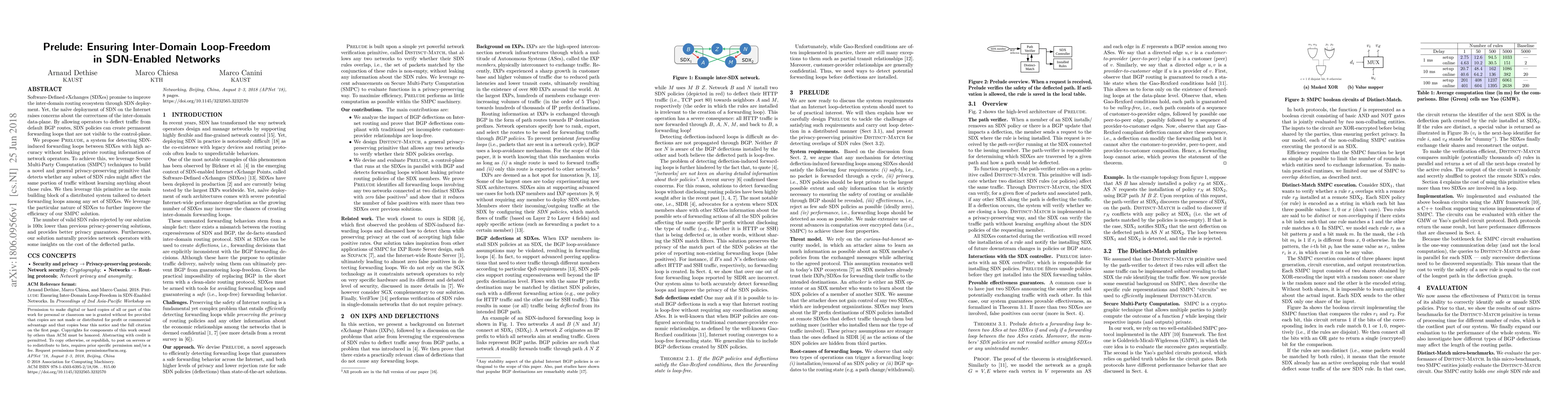 Software-Defined-eXchanges (SDXes) promise to tackle the timely quest of bringing improving the inter-domain routing ecosystem through SDN deployment. Yet, the naive deployment of SDN on the Internet raises concerns about the correctness of the inter-domain data-plane. By allowing operators to deflect traffic from the default BGP route, SDN policies are susceptible of creating permanent forwarding loops invisible to the control-plane. In this paper, we propose a system, called Prelude, for detecting SDN-induced forwarding loops between SDXes with high accuracy without leaking the private routing information of network operators. To achieve this, we leverage Secure Multi-Party Computation (SMPC) techniques to build a novel and general privacy-preserving primitive that detects whether any subset of SDN rules might affect the same portion of traffic without learning anything about those rules. We then leverage that primitive as the main building block of a distributed system tailored to detect forwarding loops among any set of SDXes. We leverage the particular nature of SDXes to further improve the efficiency of our SMPC solution. The number of valid SDN rules, i.e., not creating loops, rejected by our solution is 100x lower than previous privacy-preserving solutions, and also provides better privacy guarantees. Furthermore, our solution naturally provides network operators with some hindsight on the cost of the deflected paths.