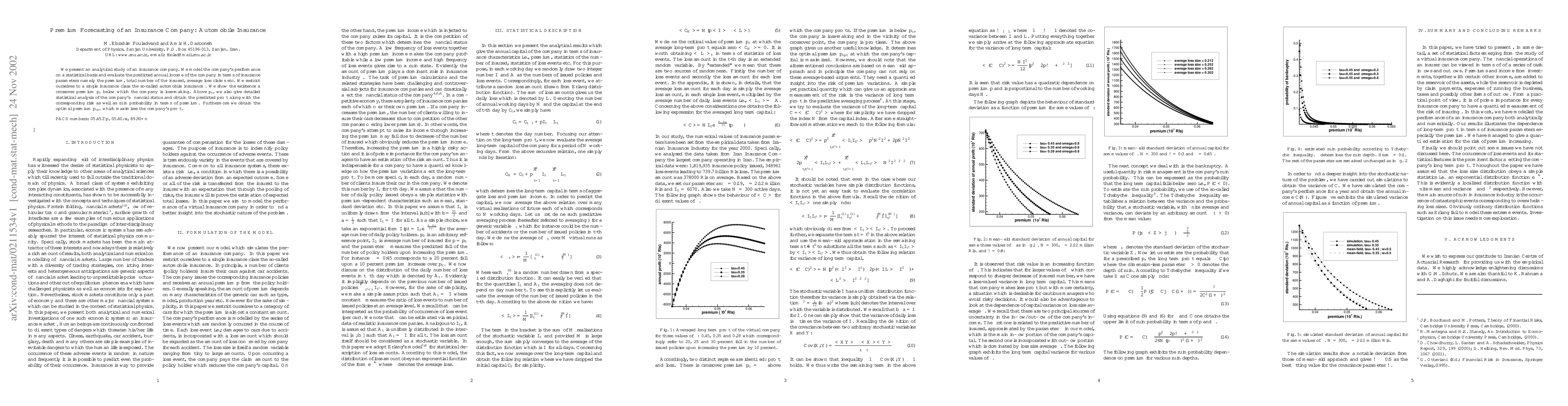 This study models an insurance company's financial performance for automobile insurance, focusing on predicting annual income based on premium, insured numbers, and loss claims. It identifies a crossover premium p_c below which the company incurs losses, and above which it provides detailed statistical analysis and optimal premium p_{opt} for maximizing profit while considering risk and ruin probability.