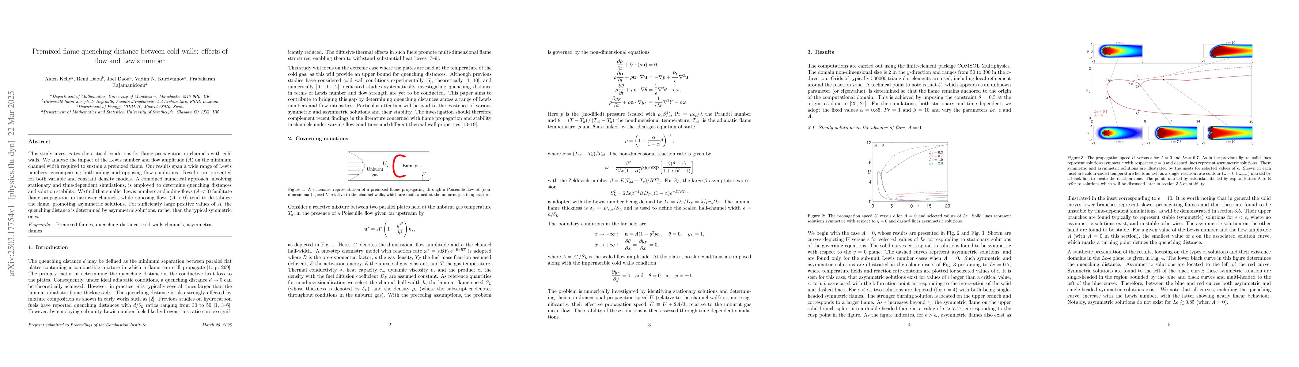 The research presents a comprehensive analysis of flame quenching distances in channels with cold walls, considering the impact of Lewis number and flow amplitude on flame propagation.