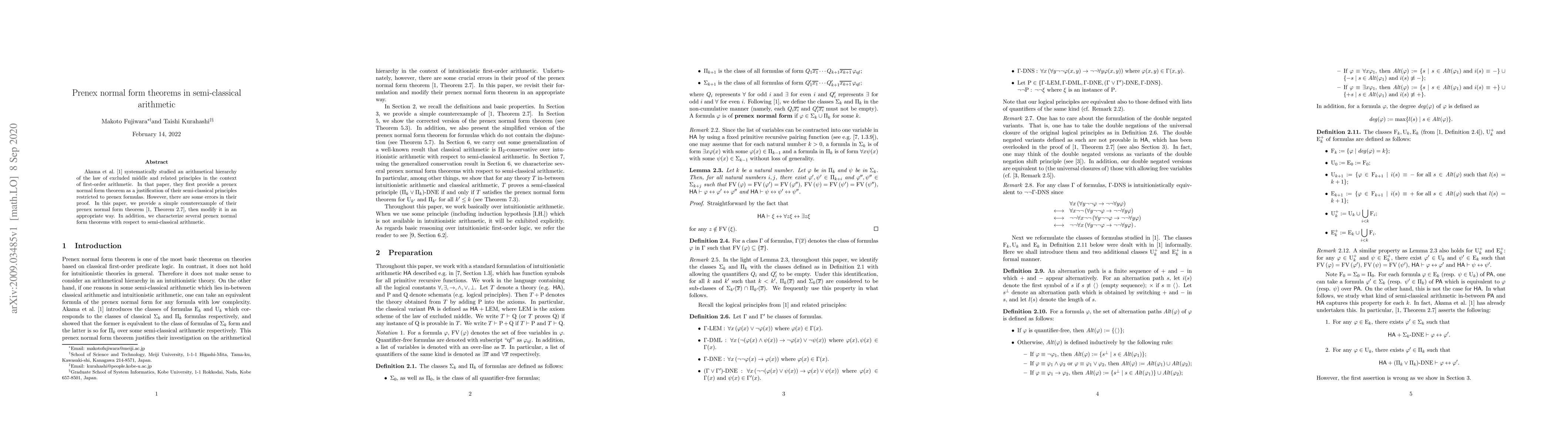 This paper corrects errors in a previous prenex normal form theorem within semi-classical arithmetic, provides a counterexample, and offers a modified version along with a characterization of several related theorems in this context.