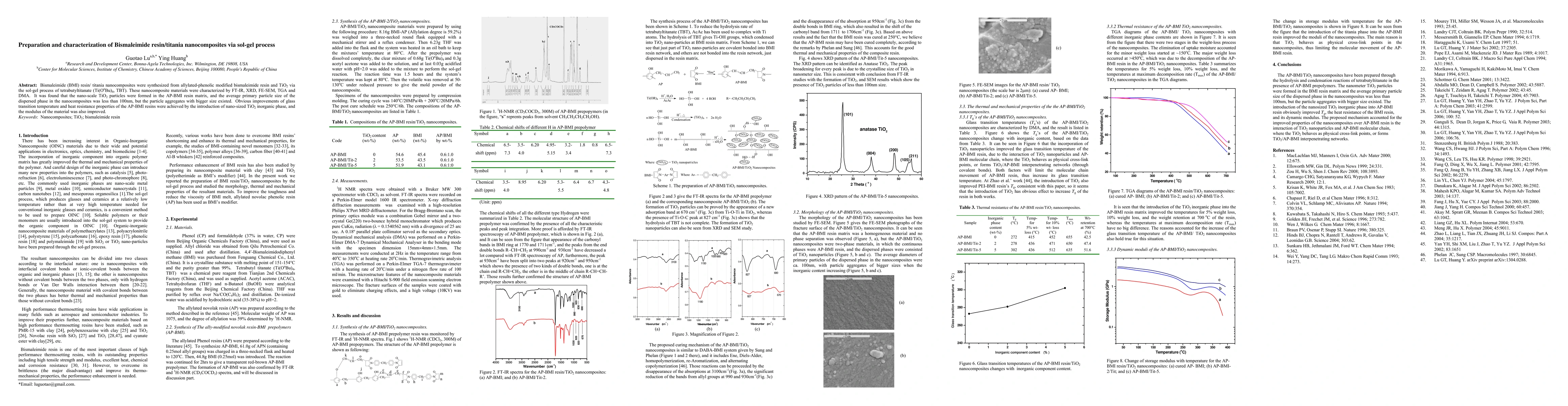 Researchers created Bismaleimide resin/Titania nanocomposites using a sol-gel process, improving glass transition temperature, heat resistance, and modulus of the material by introducing nano-sized TiO2 particles.