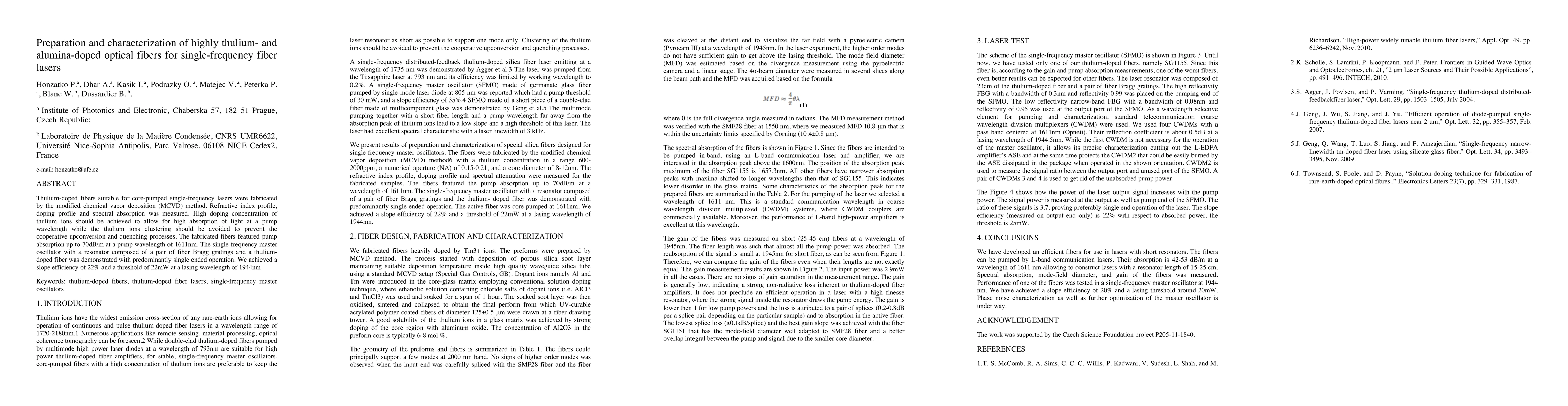 Researchers created high-quality optical fibers with high thulium ion concentration for single-frequency fiber lasers, achieving pump absorption of up to 70dB/m and a slope efficiency of 22%.