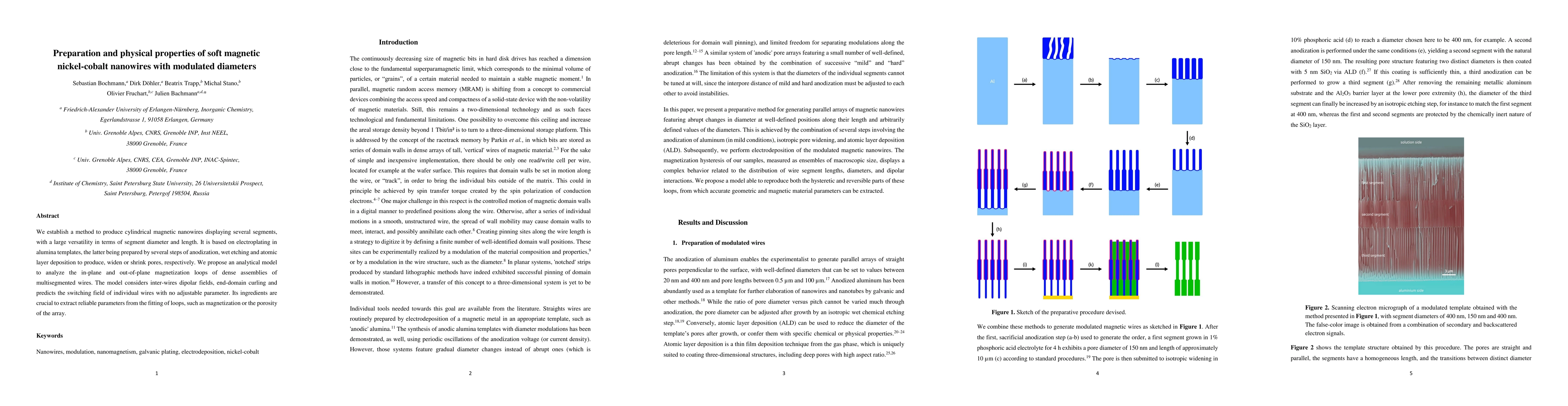 Researchers developed a method to create soft magnetic nickel-cobalt nanowires with varying diameters, and proposed a model to analyze their magnetization loops, enabling the prediction of switching fields and reliable parameter extraction.