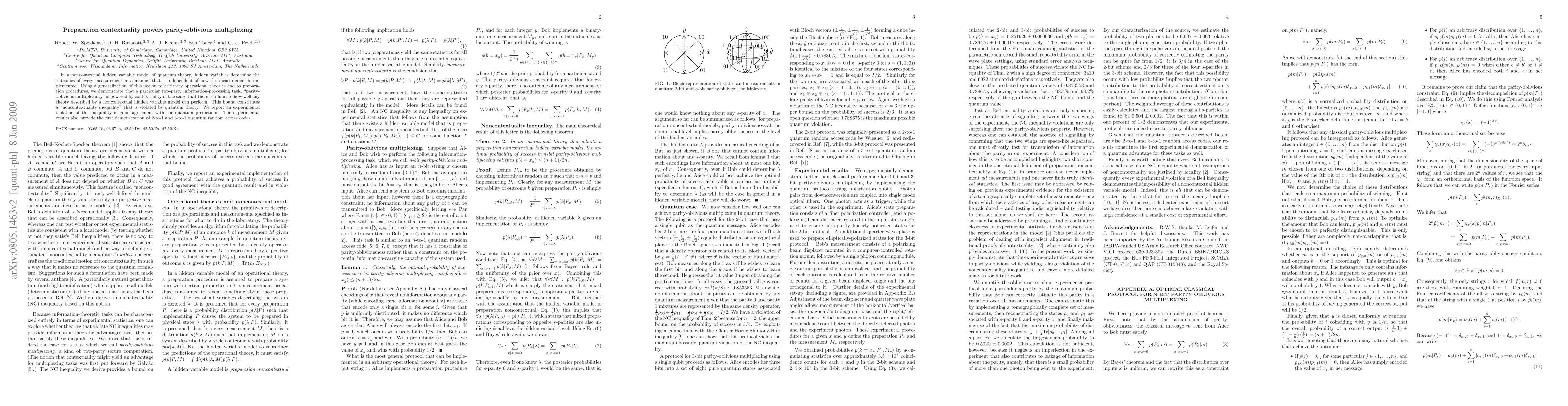 In a noncontextual hidden variable model of quantum theory, hidden variables determine the outcomes of every measurement in a manner that is independent of how the measurement is implemented. Using a generalization of this notion to arbitrary operational theories and to preparation procedures, we demonstrate that a particular two-party information-processing task, "parity-oblivious multiplexing," is powered by contextuality in the sense that there is a limit to how well any theory described by a noncontextual hidden variable model can perform. This bound constitutes a "noncontextuality inequality" that is violated by quantum theory. We report an experimental violation of this inequality in good agreement with the quantum predictions. The experimental results also provide the first demonstration of 2-to-1 and 3-to-1 quantum random access codes. Consequently, our experimental results also demonstrate better-than-classical performance for this task. They also represent the first demonstration of 2-to-1 and 3-to-1 quantum random access codes.