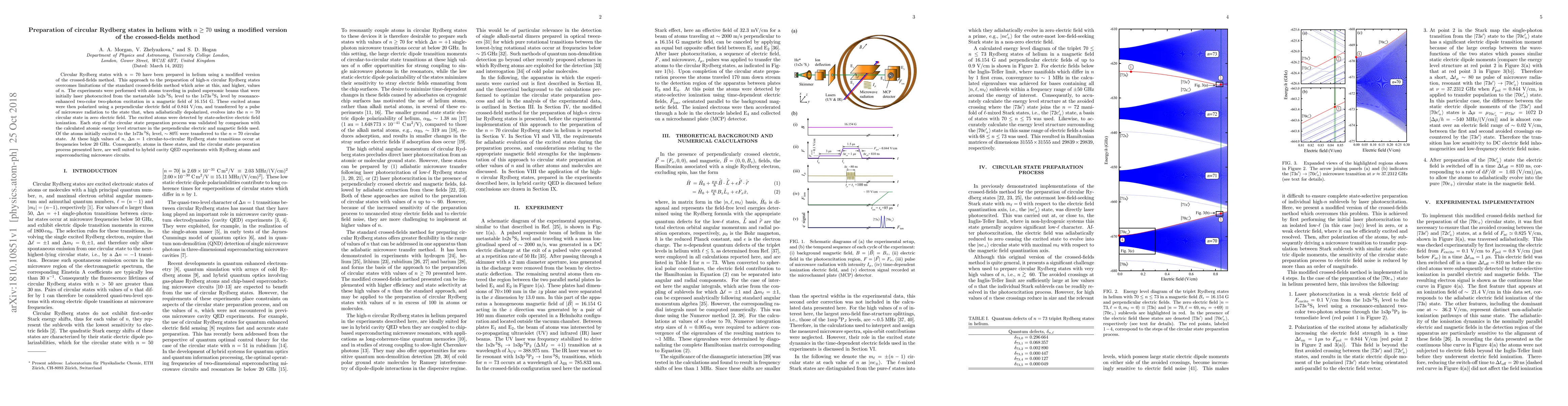 The research describes a method to create circular Rydberg states in helium with n ≥ 70, overcoming limitations of the standard crossed-fields method. The process involves laser excitation, polarization with an electric field, and microwave transfer, achieving an ~80% efficiency rate. These high-n circular states are suitable for hybrid cavity QED experiments with Rydberg atoms and superconducting microwave circuits.