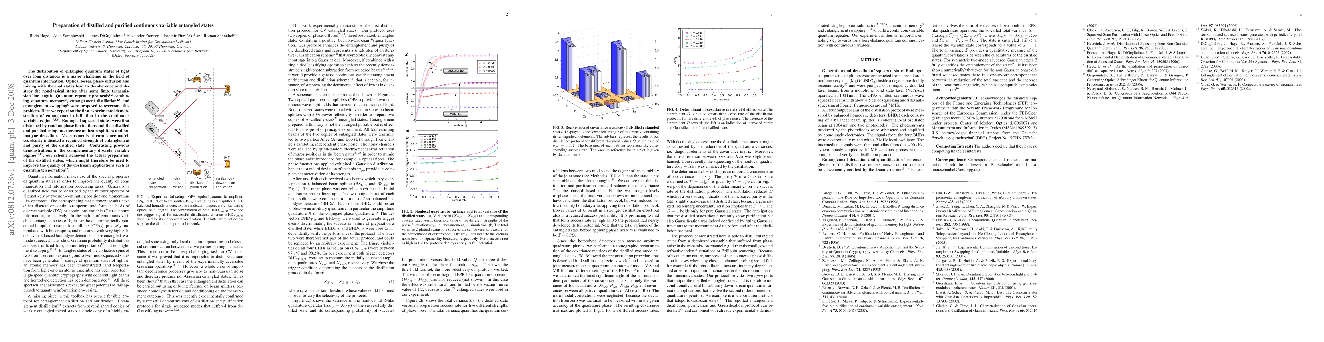 This paper demonstrates the experimental preparation of distilled and purified continuous-variable entangled states using entanglement distillation techniques, overcoming decoherence issues caused by optical losses and phase diffusion. The method involves interference on beam splitters and homodyne detection, resulting in improved entanglement strength and purity, potentially enhancing quantum teleportation and other applications.