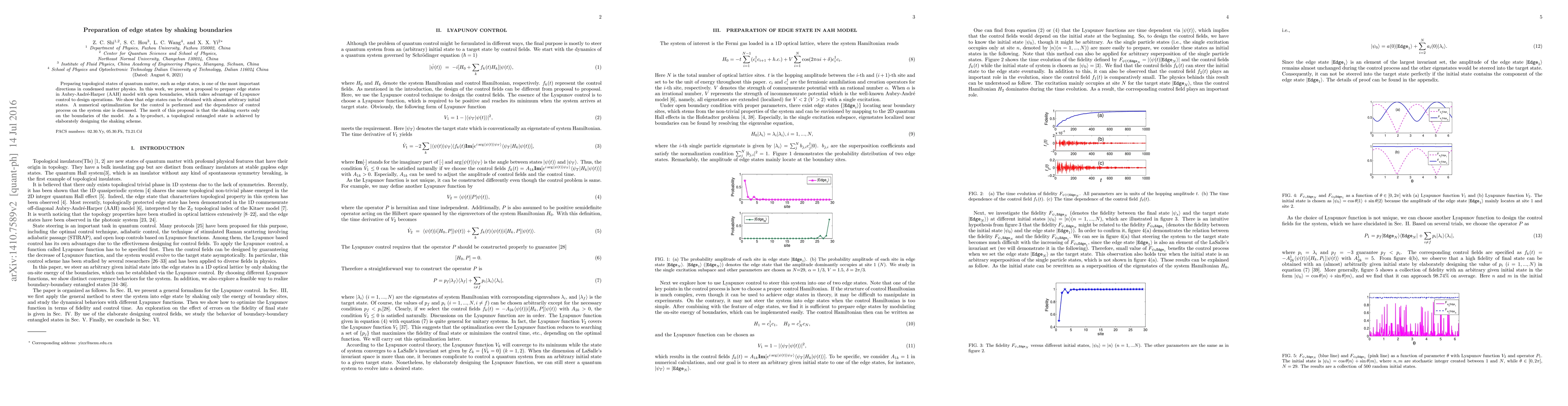 Preparing topological states of quantum matter, such as edge states, is one of the most important directions in condensed matter physics. In this work, we present a proposal to prepare edge states in Aubry-Andr$\acute{\textrm{e}}$-Harper (AAH) model with open boundaries, which takes advantage of Lyapunov control to design operations. We show that edge states can be obtained with almost arbitrary initial states. A numerical optimalization for the control is performed and the dependence of control process on the system size is discussed. The merit of this proposal is that the shaking exerts only on the boundaries of the model. As a by-product, a topological entangled state is achieved by elaborately designing the shaking scheme.