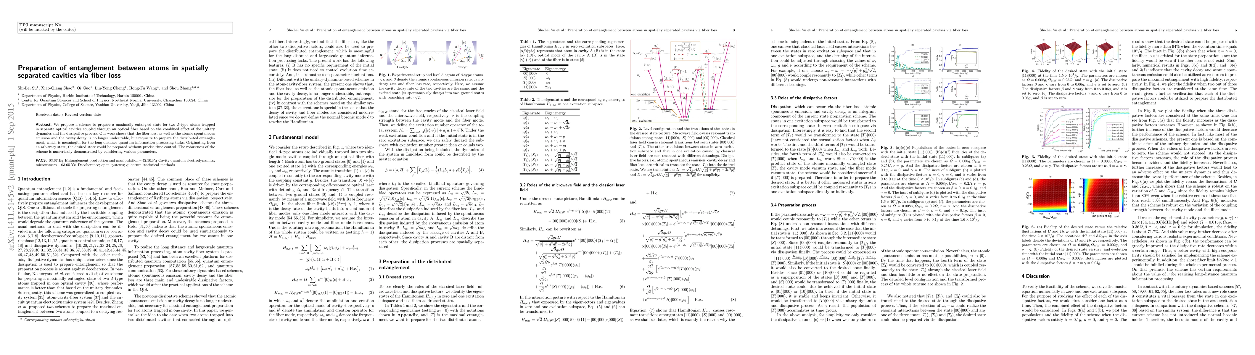 This paper proposes a method to create a maximally entangled state between two spatially separated Lambda-type atoms using optical fiber loss, demonstrating that dissipative processes are essential for distributed entanglement preparation. The robustness of the scheme is shown numerically under various conditions.